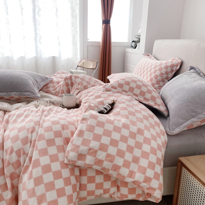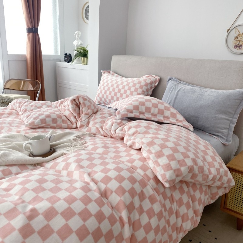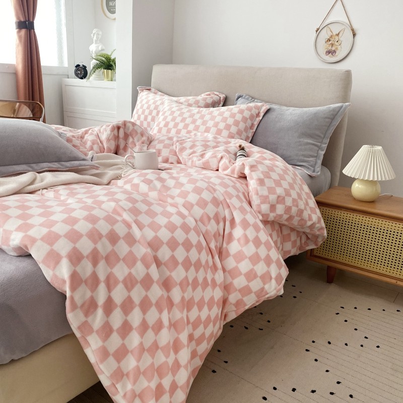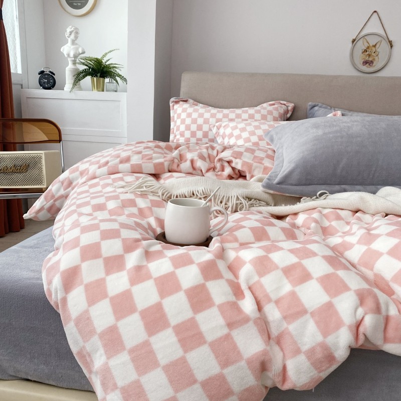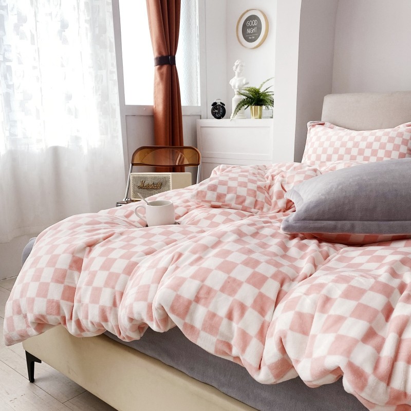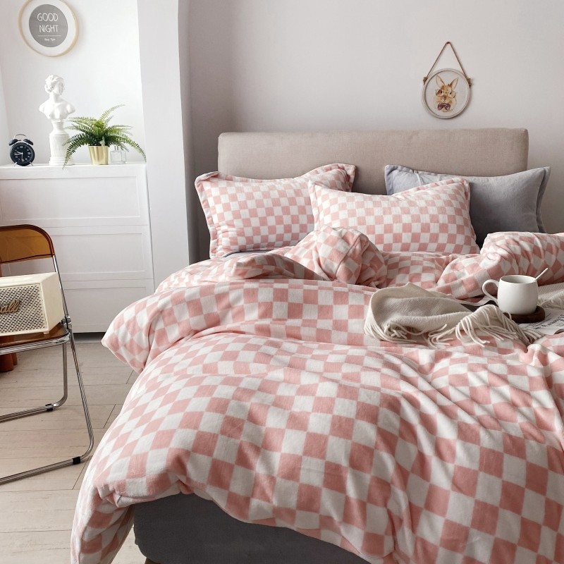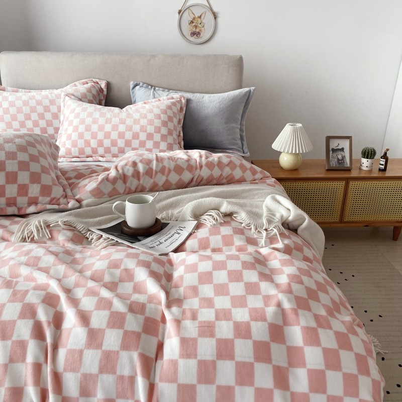 棉生活2021新款220g牛奶绒ins风绝绝子 蜜桃粉白格