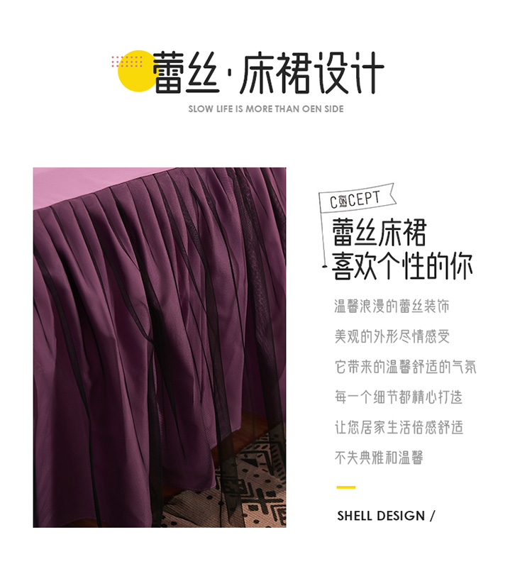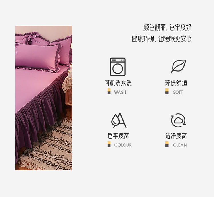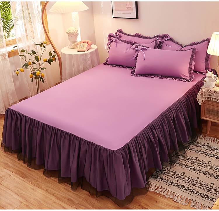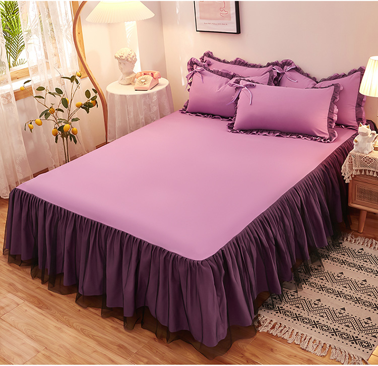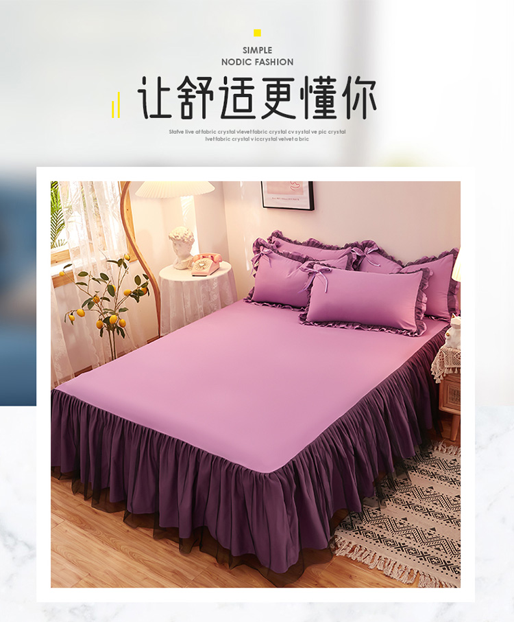 商品名称:莉莉安家纺 2025新款悦色系列纯色磨毛单床裙 黛紫