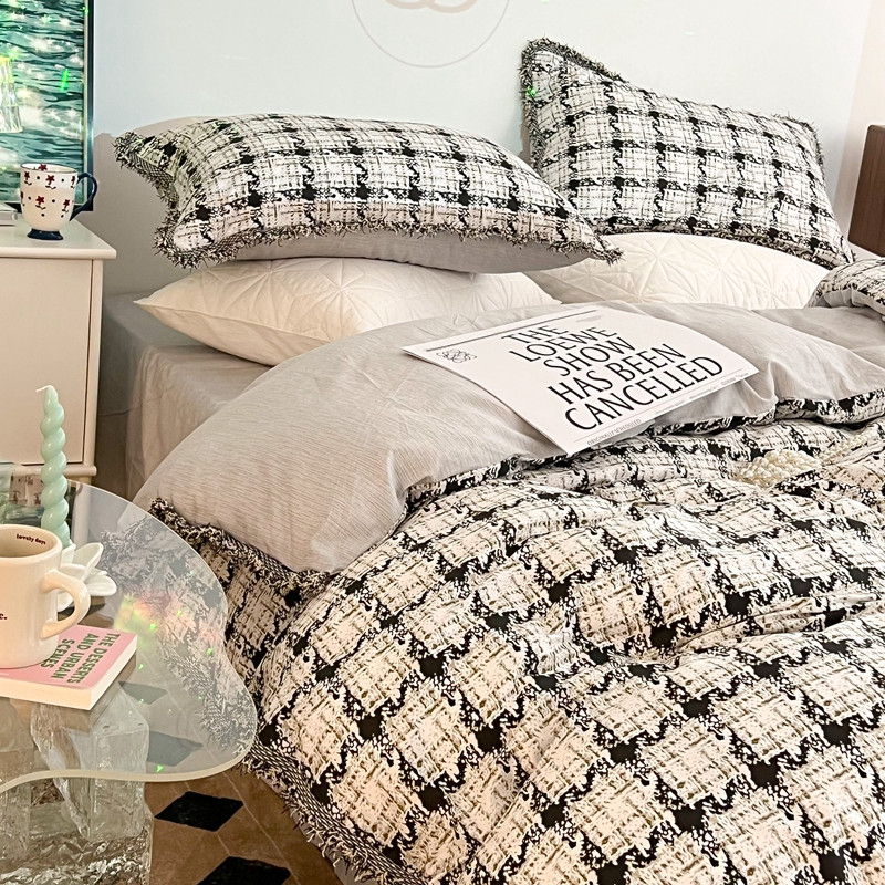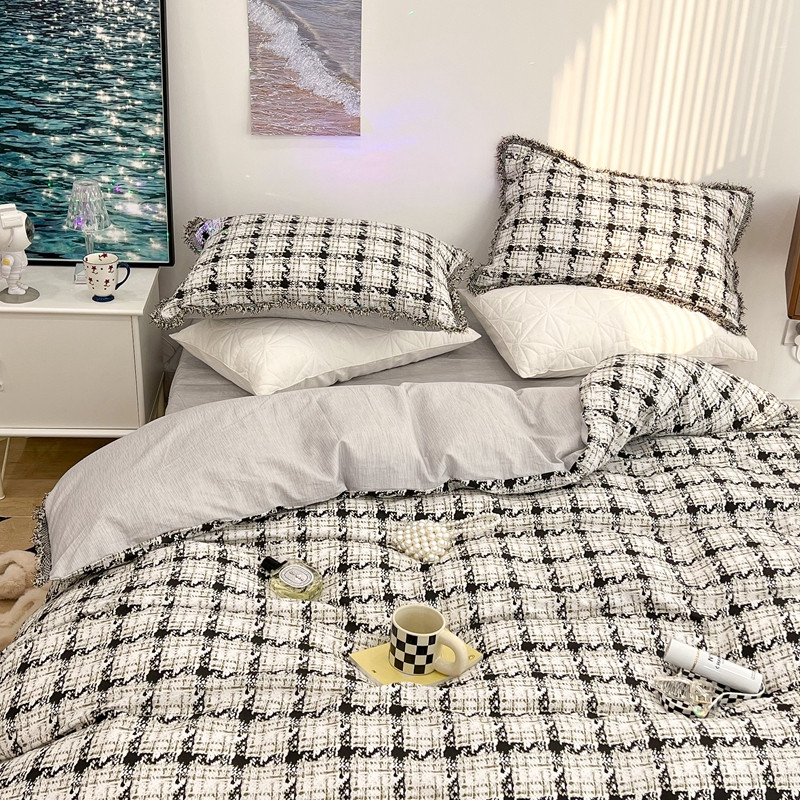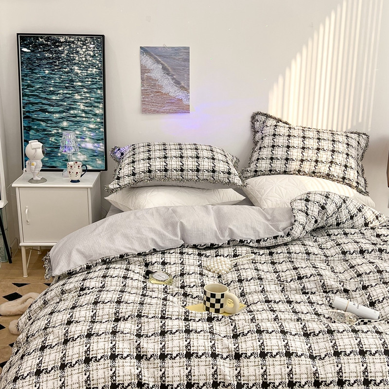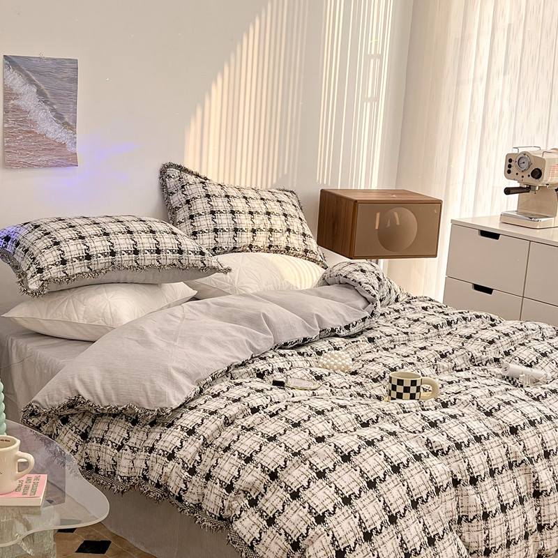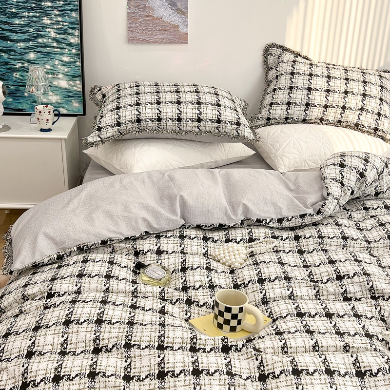 昔可家纺 2022新款13372全棉香香风流苏边四件套 香香白格流苏