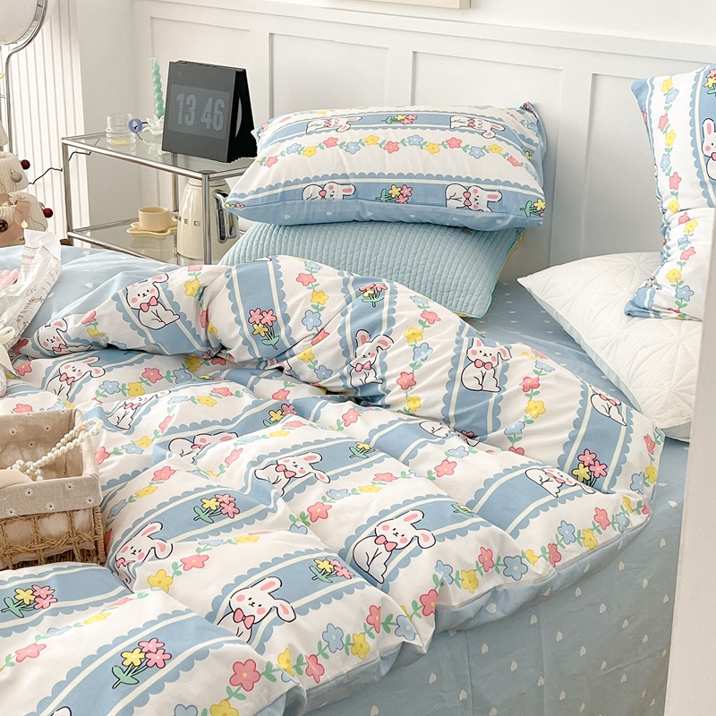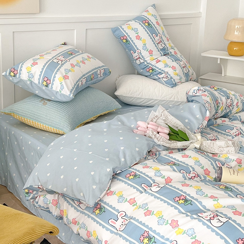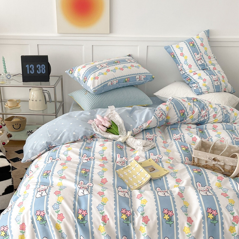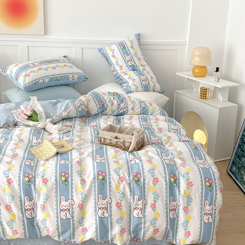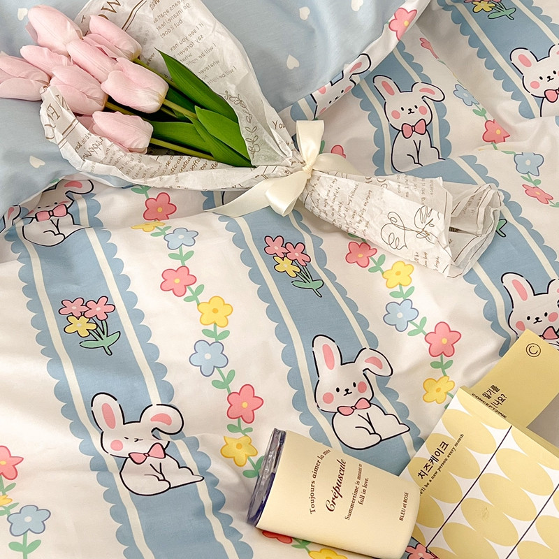 昔可家纺 2022新款13372全棉普通款卡通四件套 竖条小兔