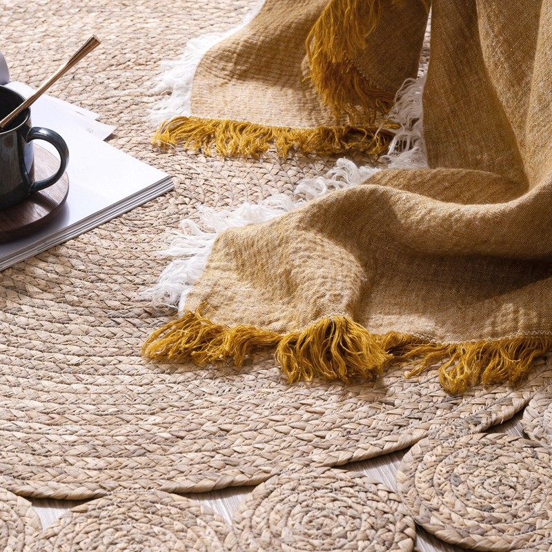 商品名称:简家居 2022新款纯亚麻流苏盖毯 黄白双拼