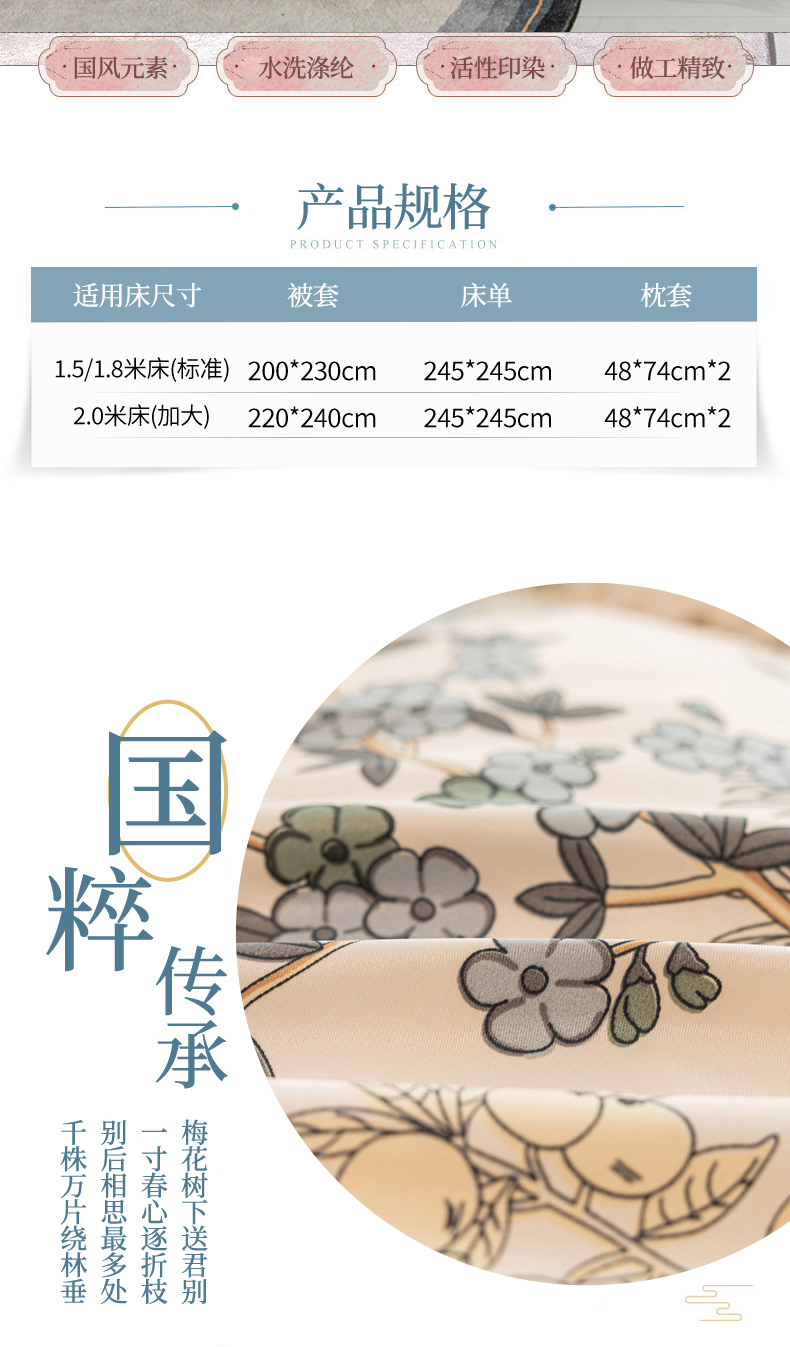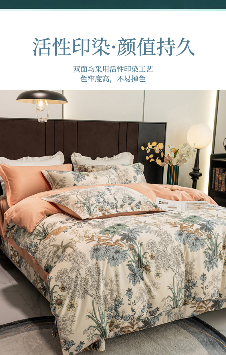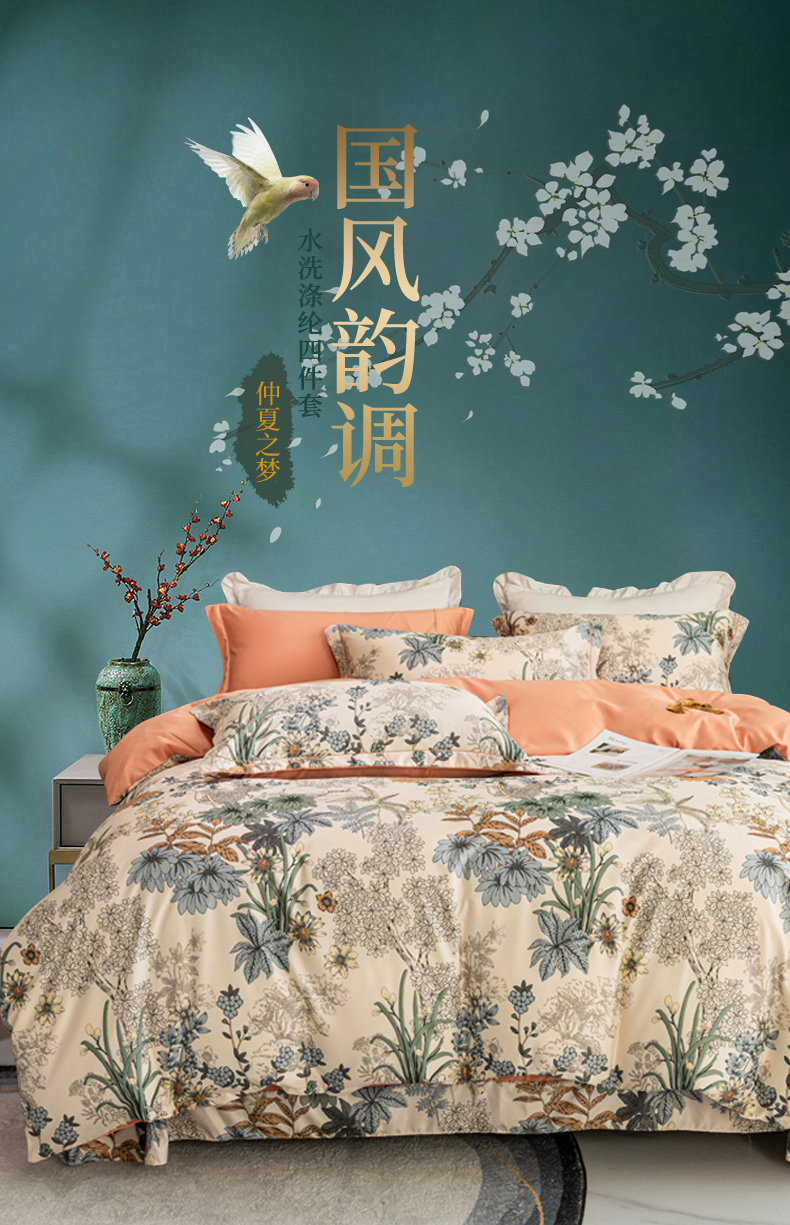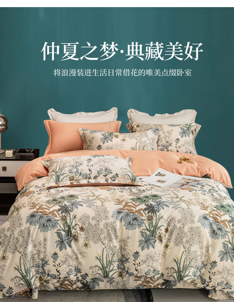 商品名称:(总)耀悦家纺 2025新款水洗真丝四件套简约印花小清新欧式ins新中式冰丝四件套