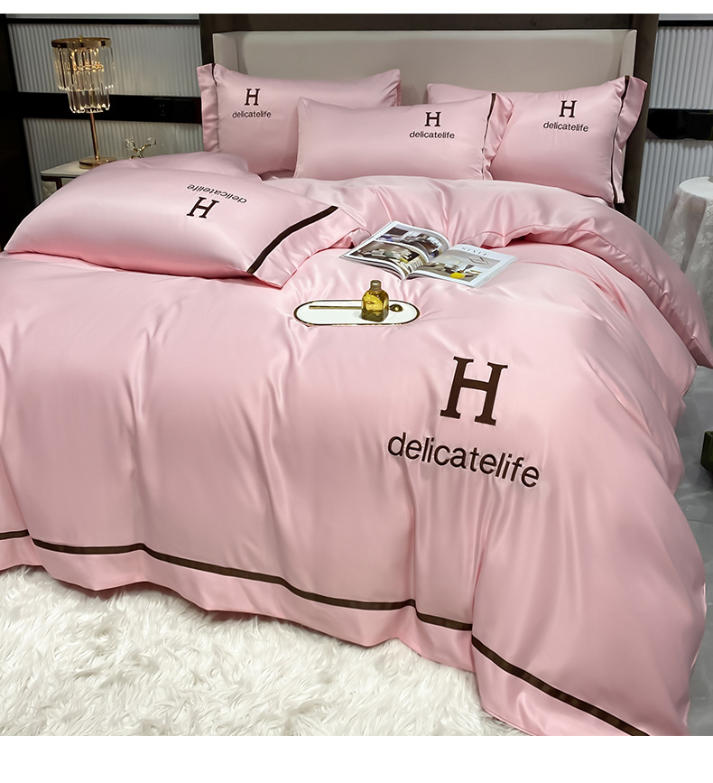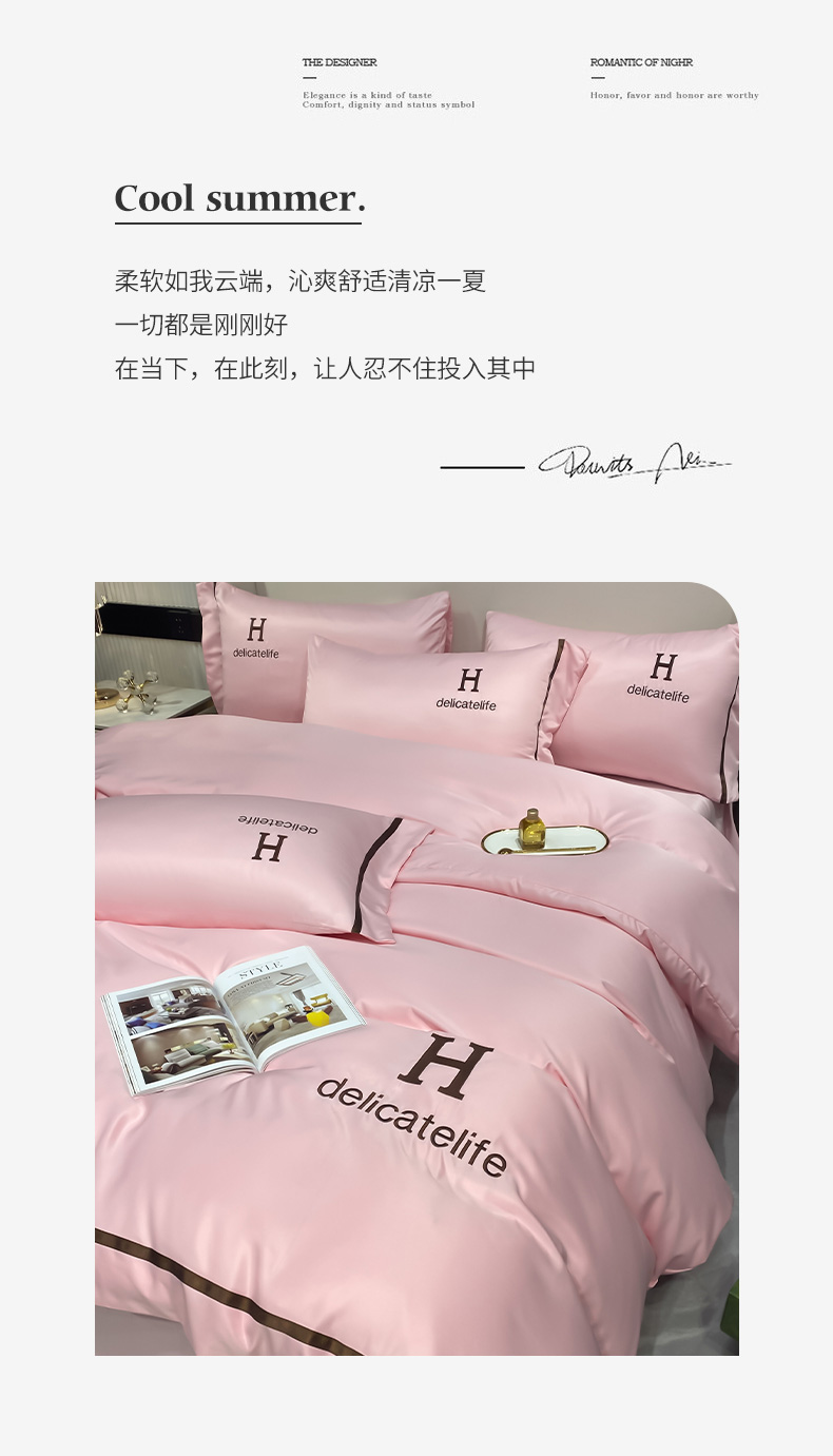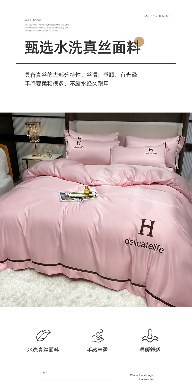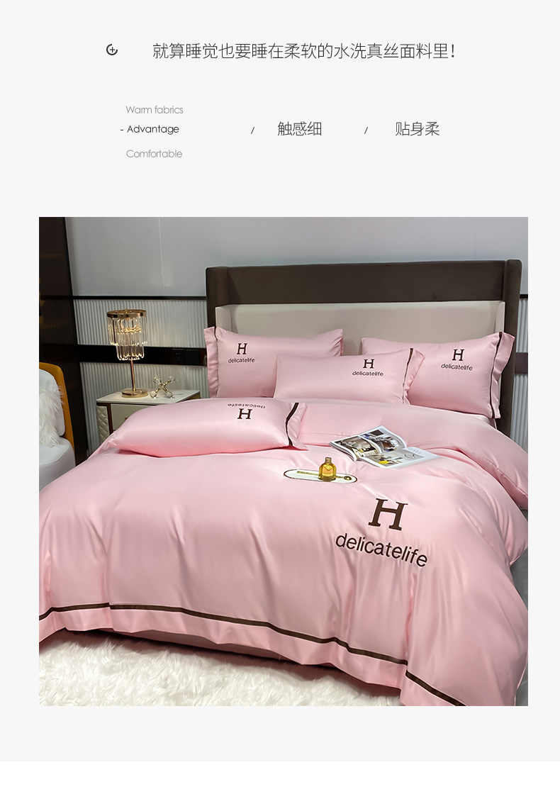 绒掌柜2023水洗真丝天丝冰丝刺绣四件套-H系列 H-少女粉