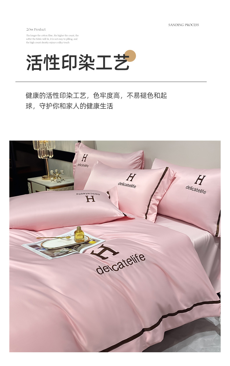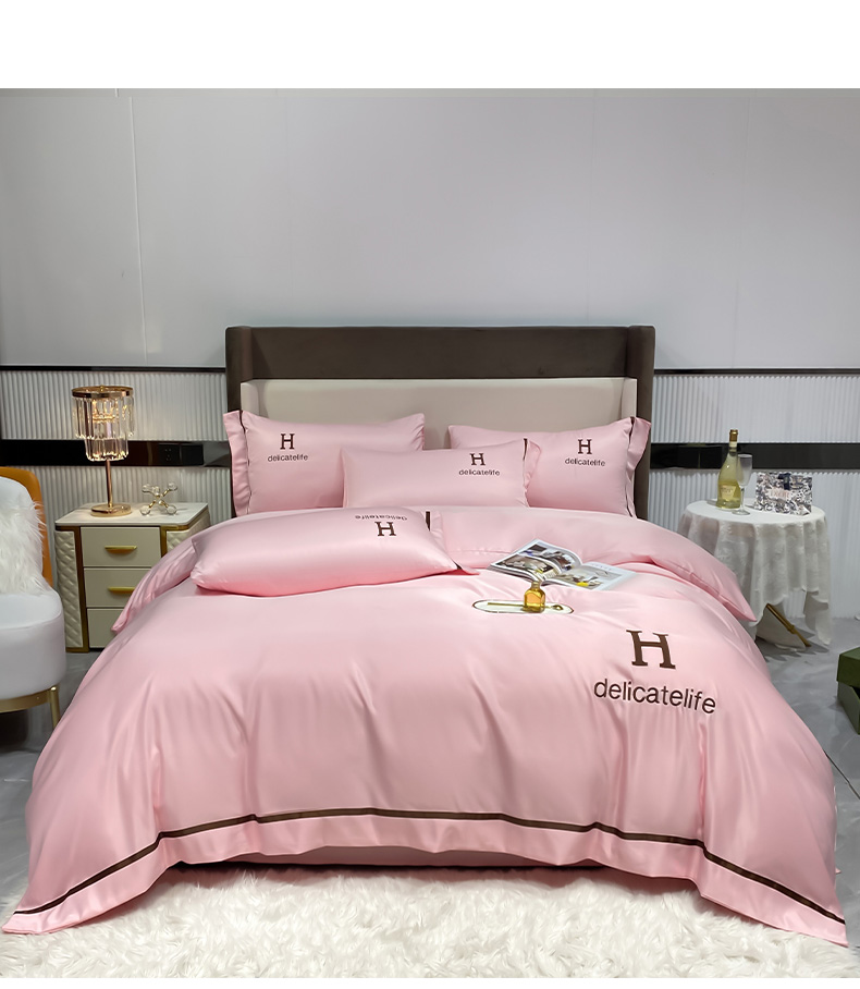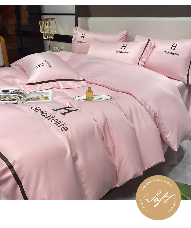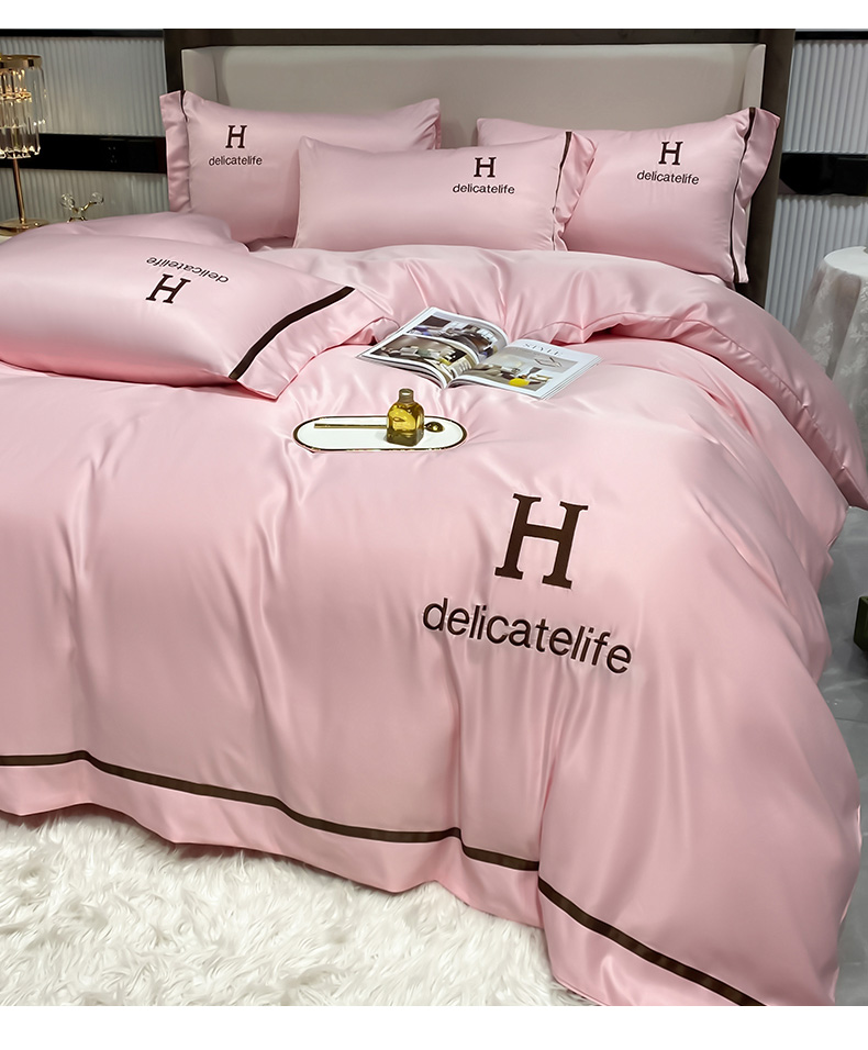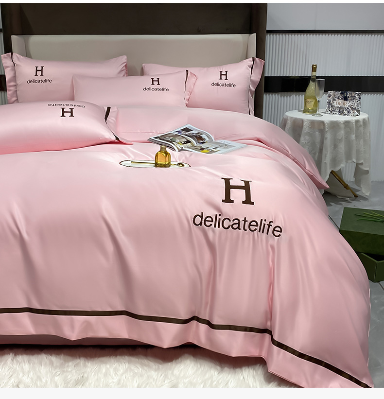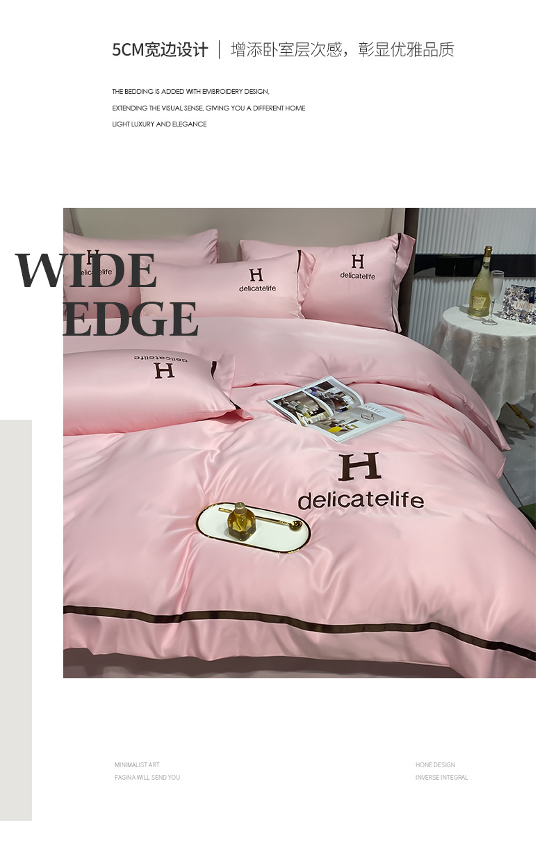 绒掌柜2023水洗真丝天丝冰丝刺绣四件套-H系列 H-少女粉