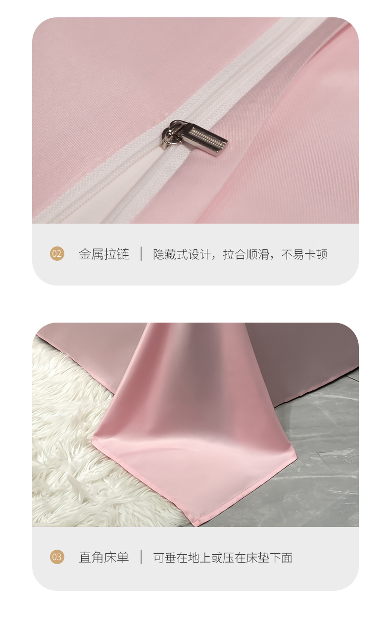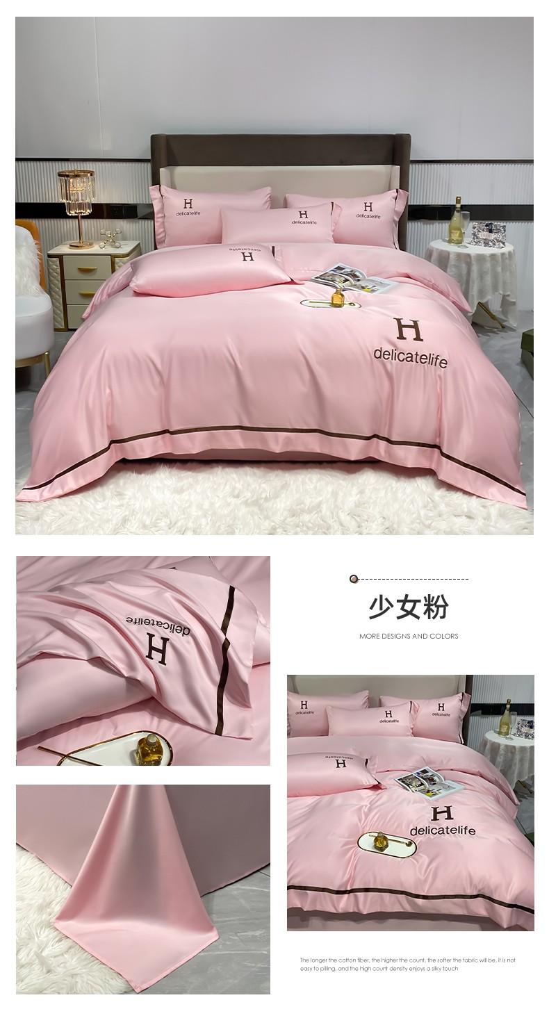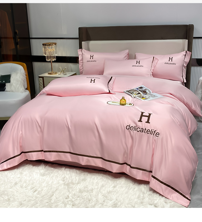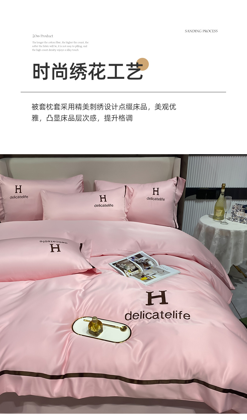 绒掌柜2023水洗真丝天丝冰丝刺绣四件套-H系列 H-少女粉