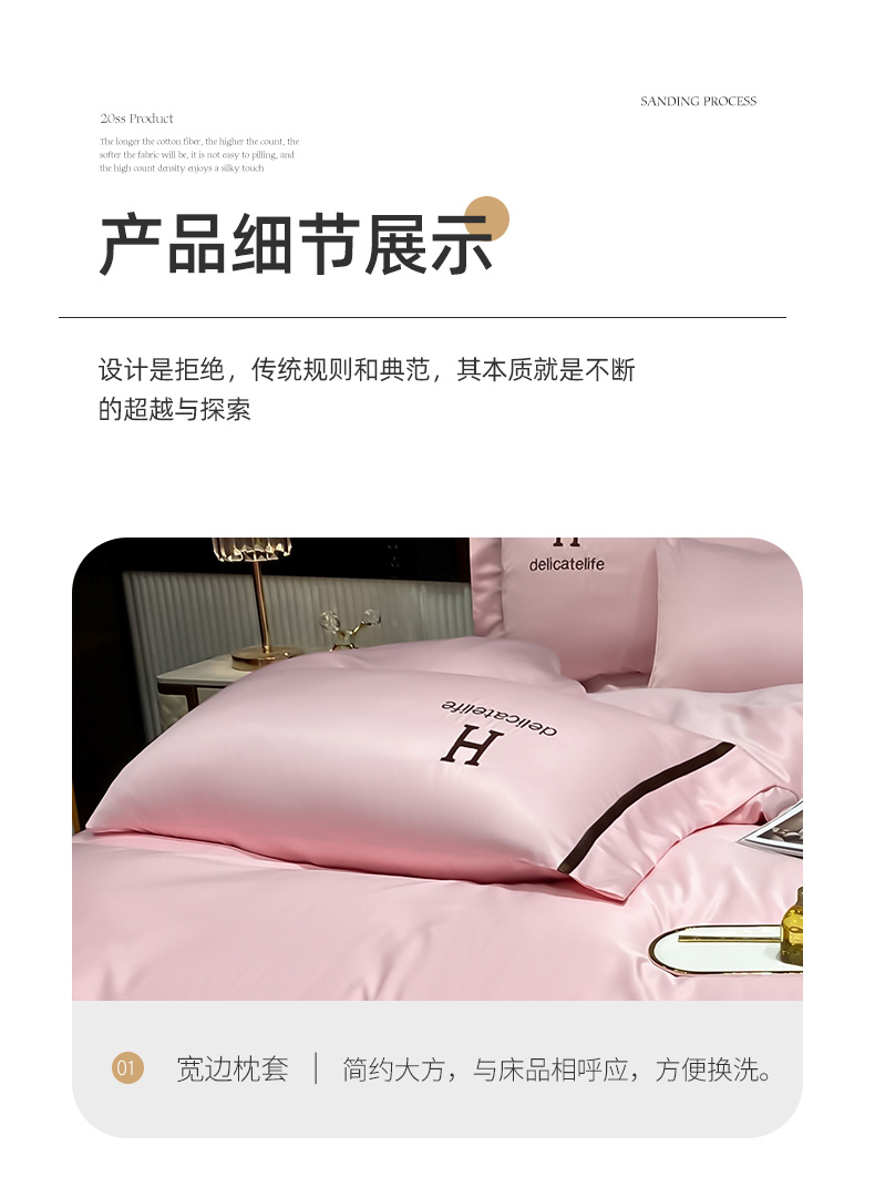 商品名称:绒掌柜2023水洗真丝天丝冰丝刺绣四件套-H系列 H-少女粉