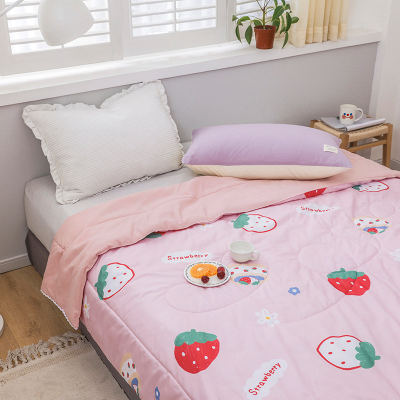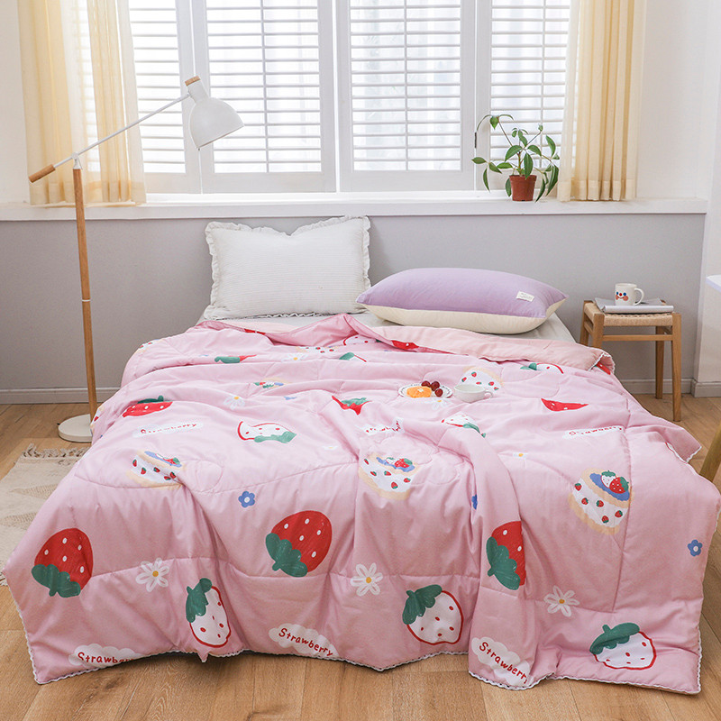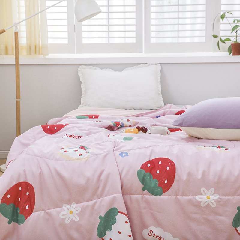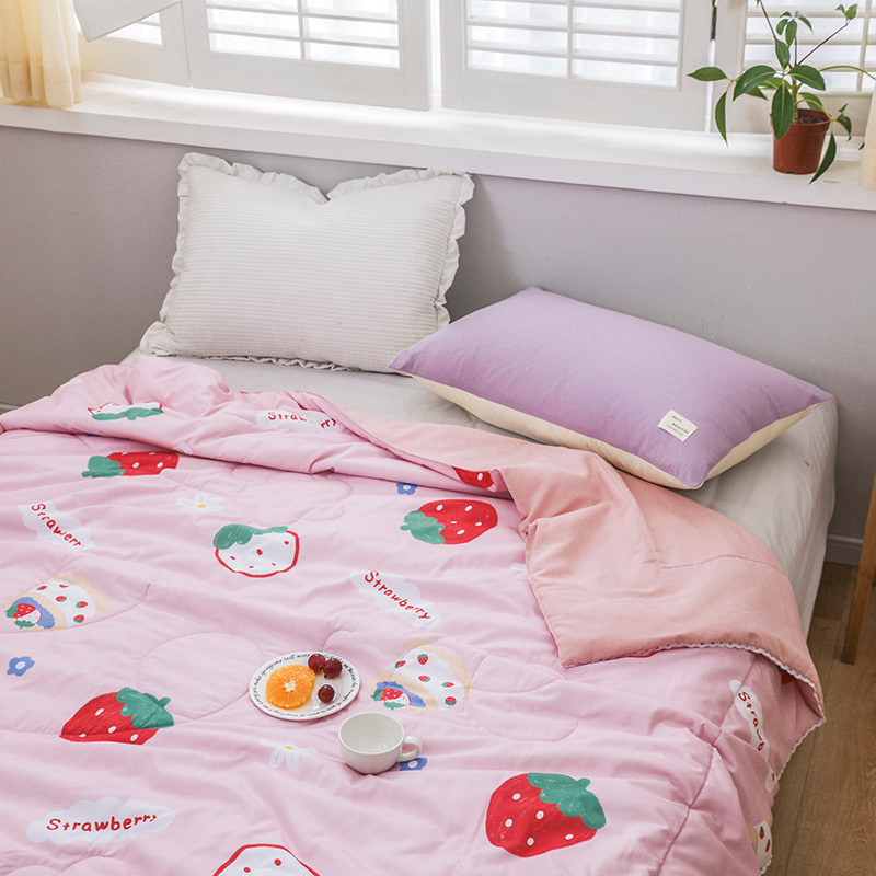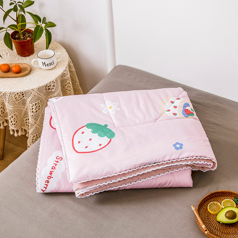 商品名称:寐居 2022新款亲肤小花边水洗棉单夏被 草莓甜心