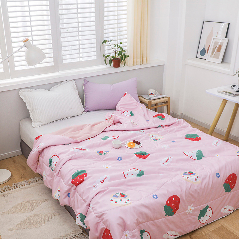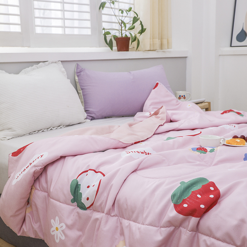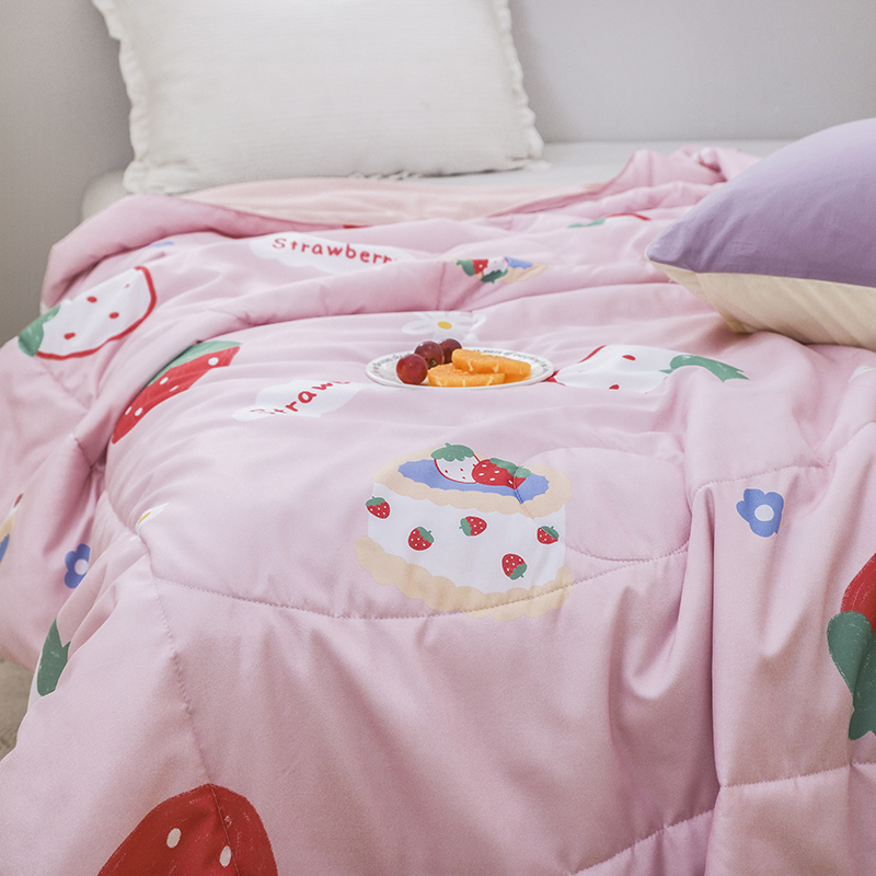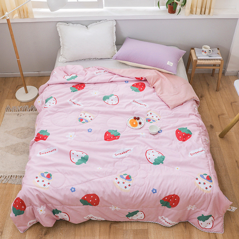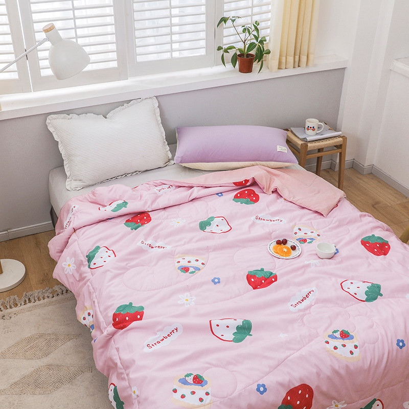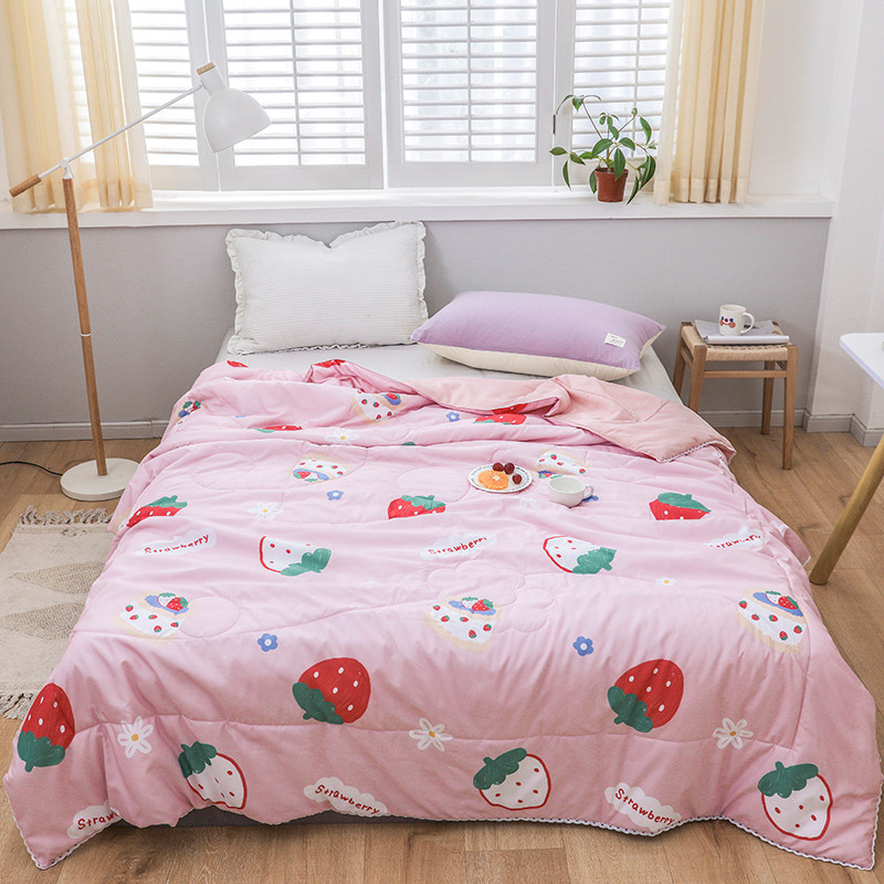 商品名称:寐居 2022新款亲肤小花边水洗棉单夏被 草莓甜心