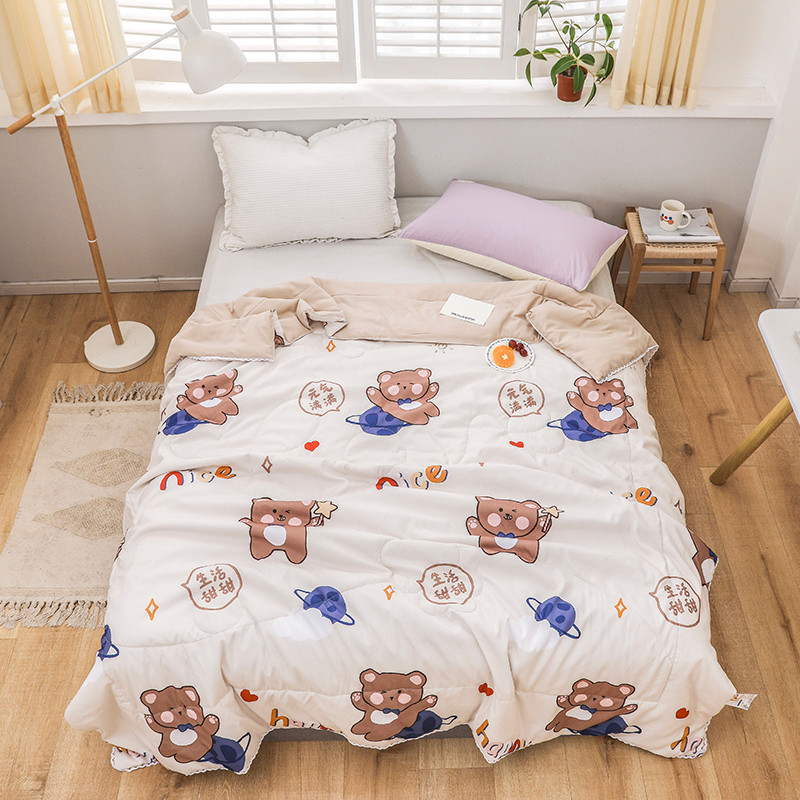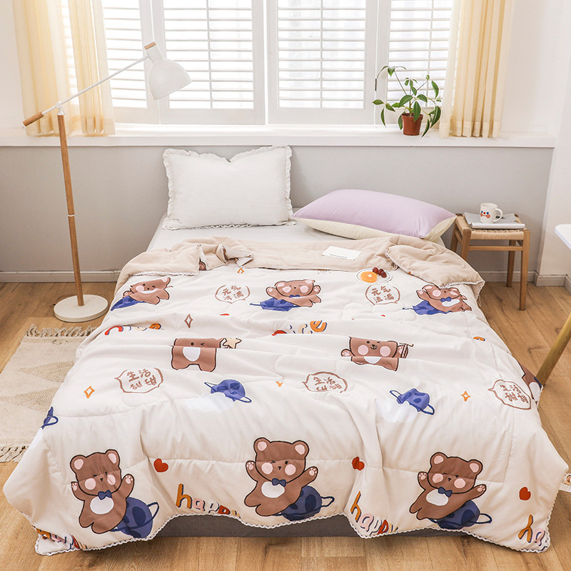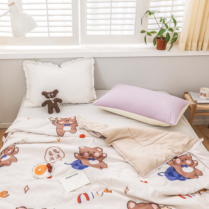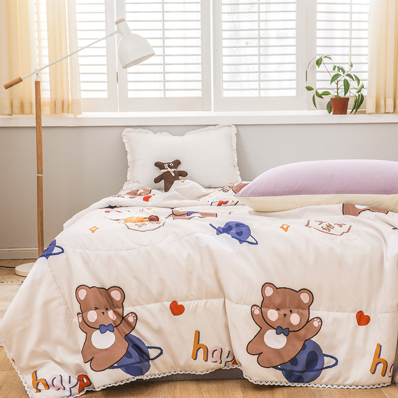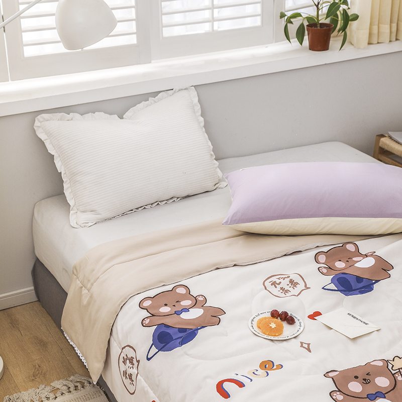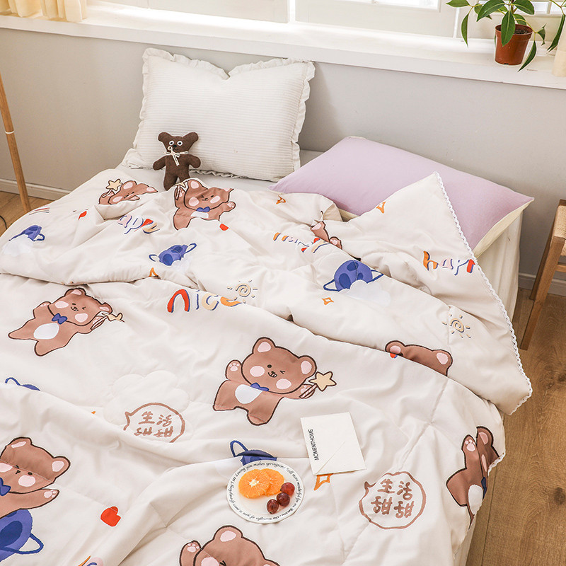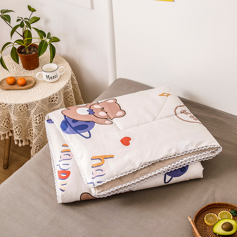 寐居 2022新款亲肤小花边水洗棉单夏被 玩具熊