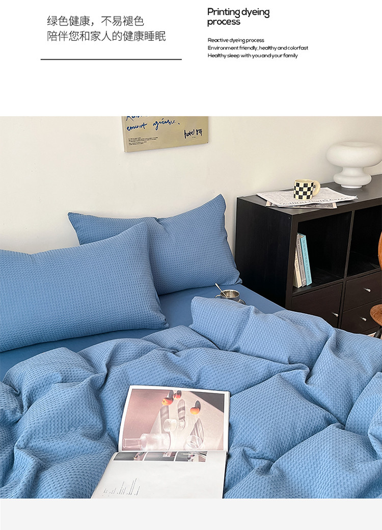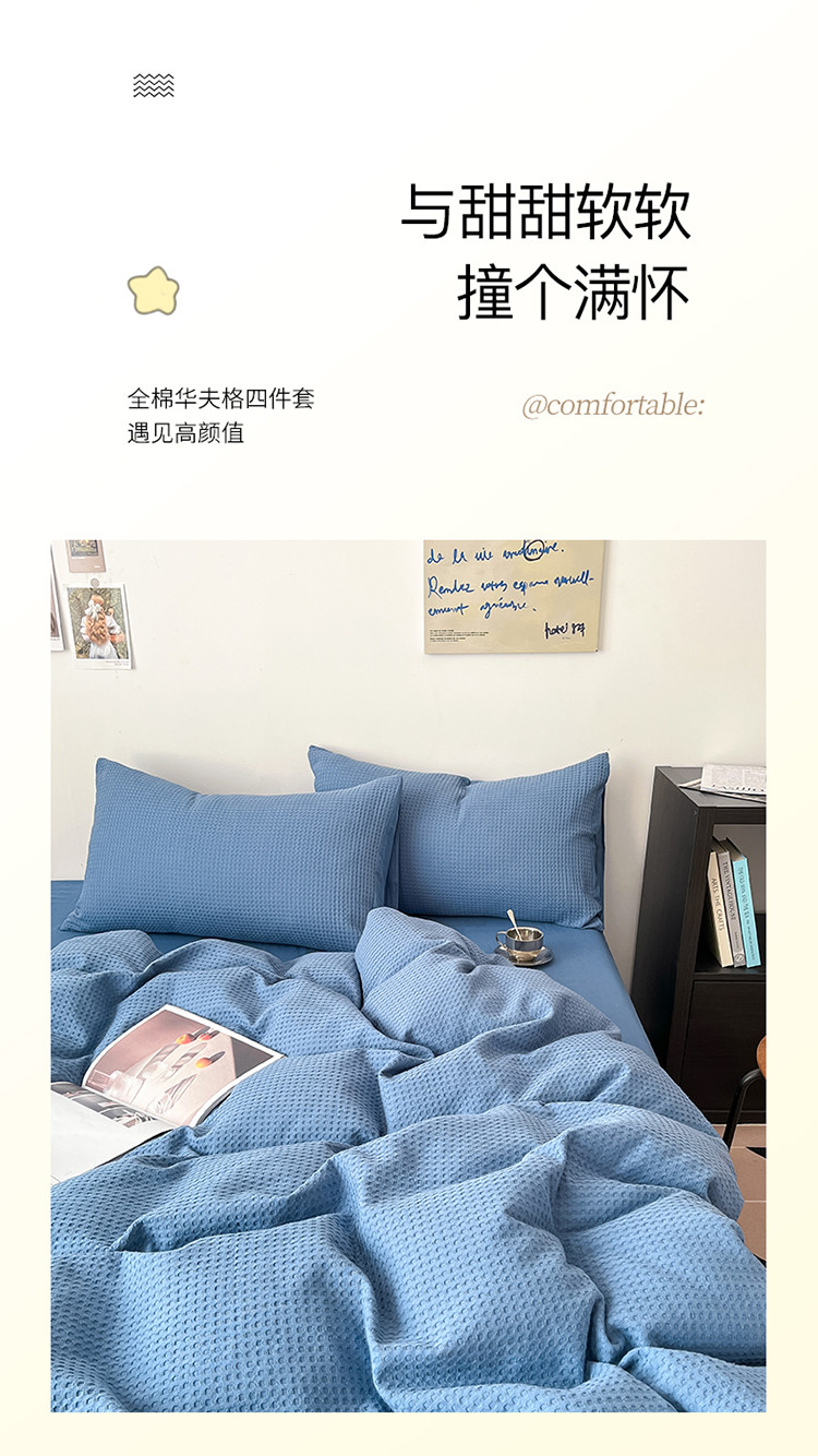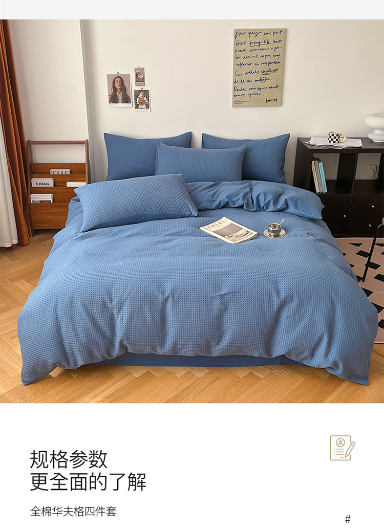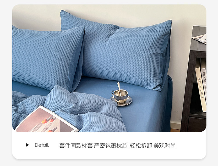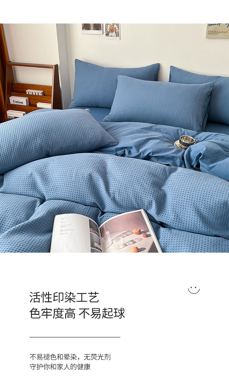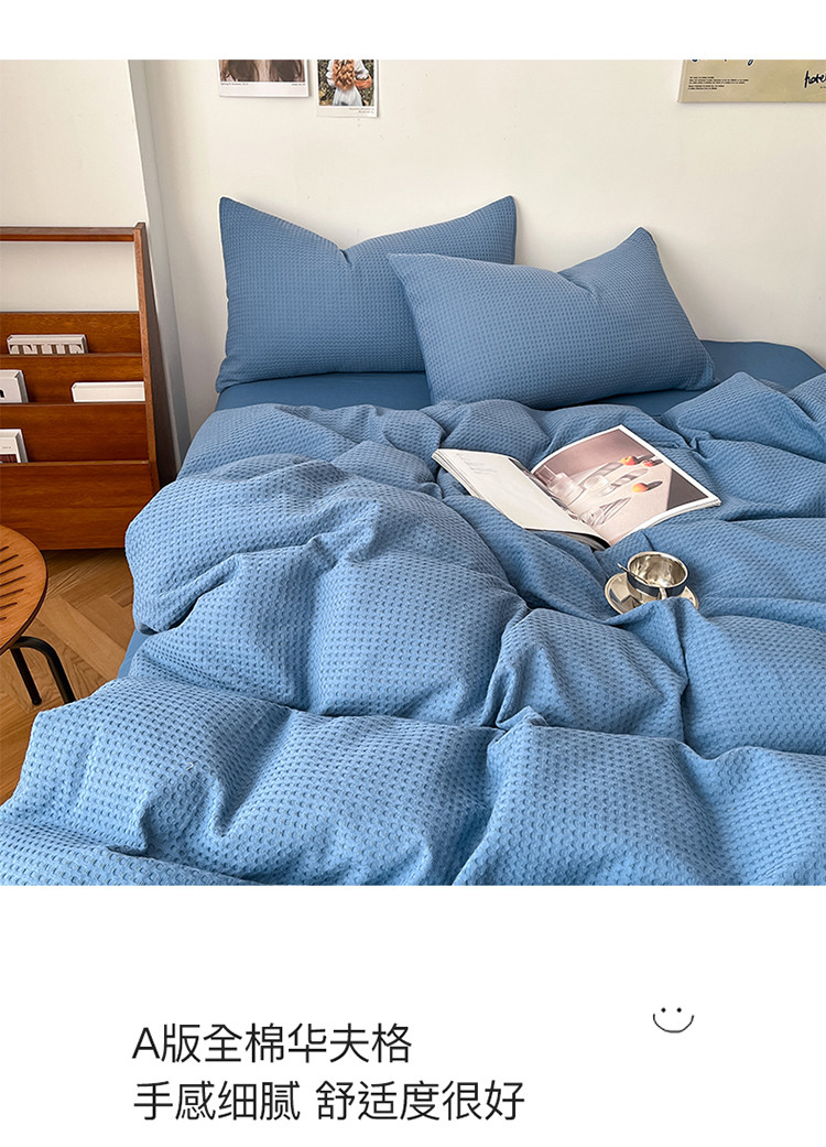 商品名称:雅居纺家纺 2022新款全棉华夫格普通款四件套 雾蓝