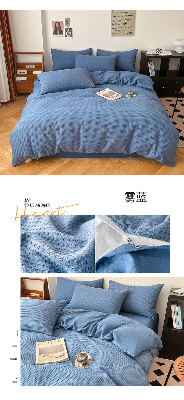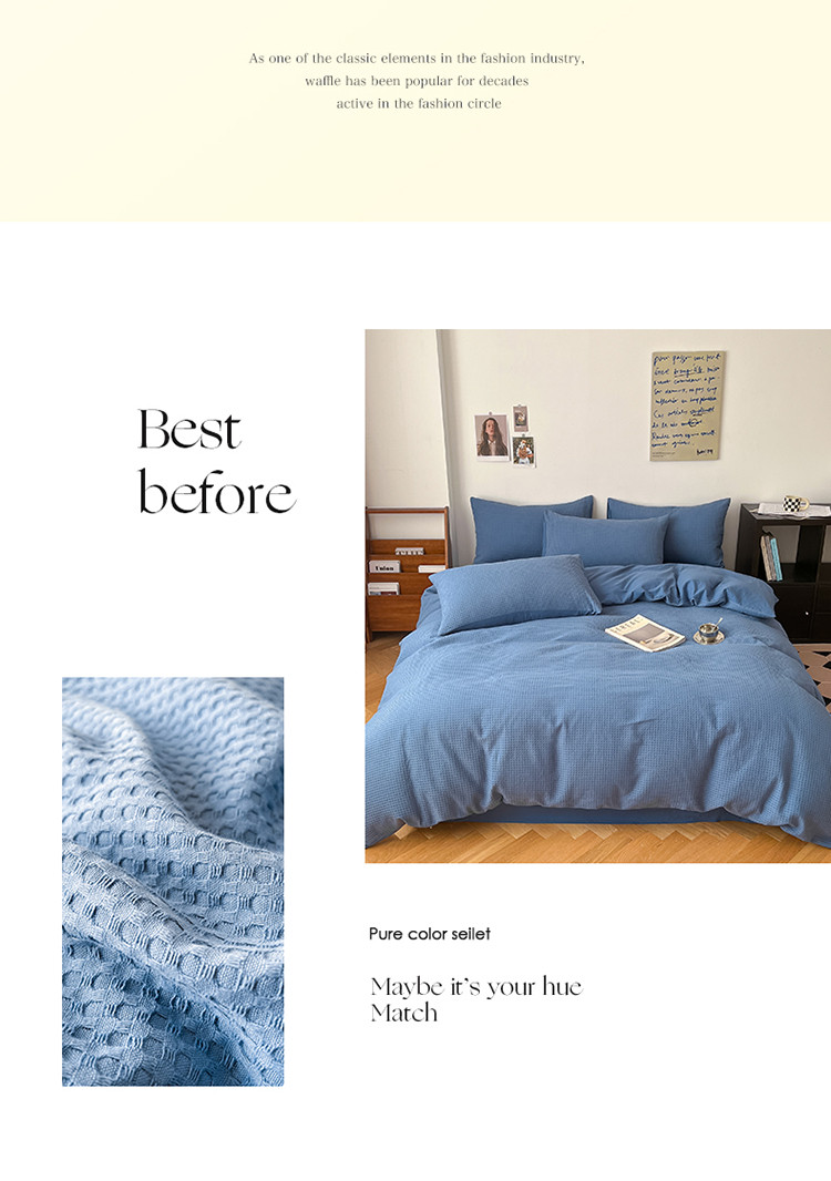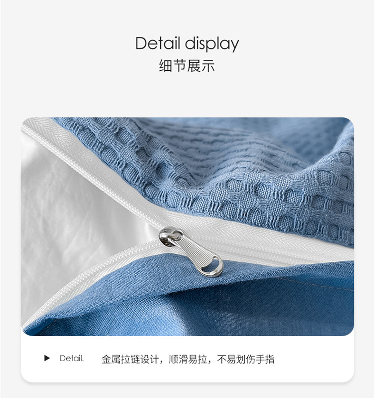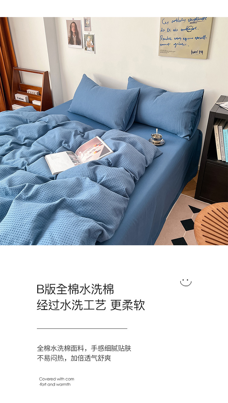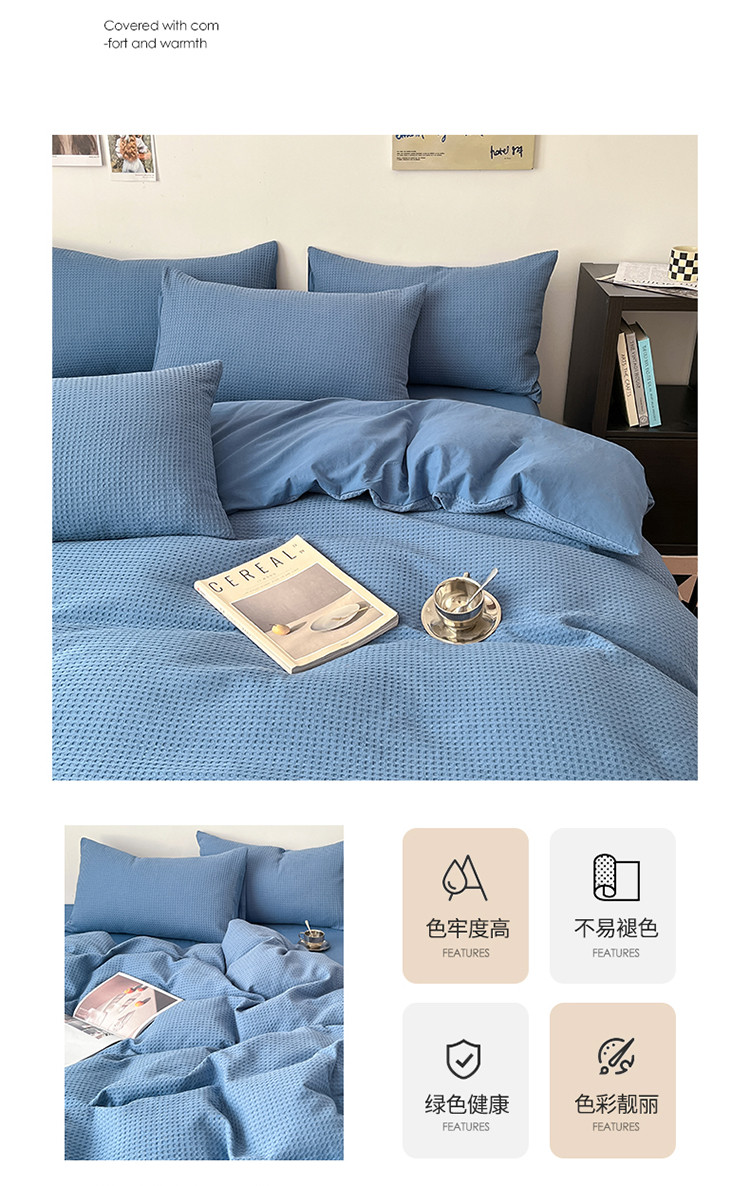 商品名称:雅居纺家纺 2022新款全棉华夫格普通款四件套 雾蓝