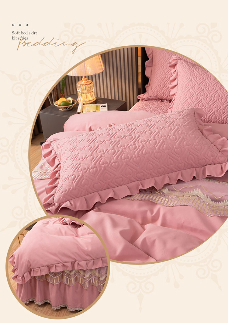 (总)2025新款纯色雕花全消光牛奶绒蕾丝绣花被套夹棉床裙 床盖款四件套(控价268),粉玉,米咖,天蓝,香芋紫,淡紫,豆纱色