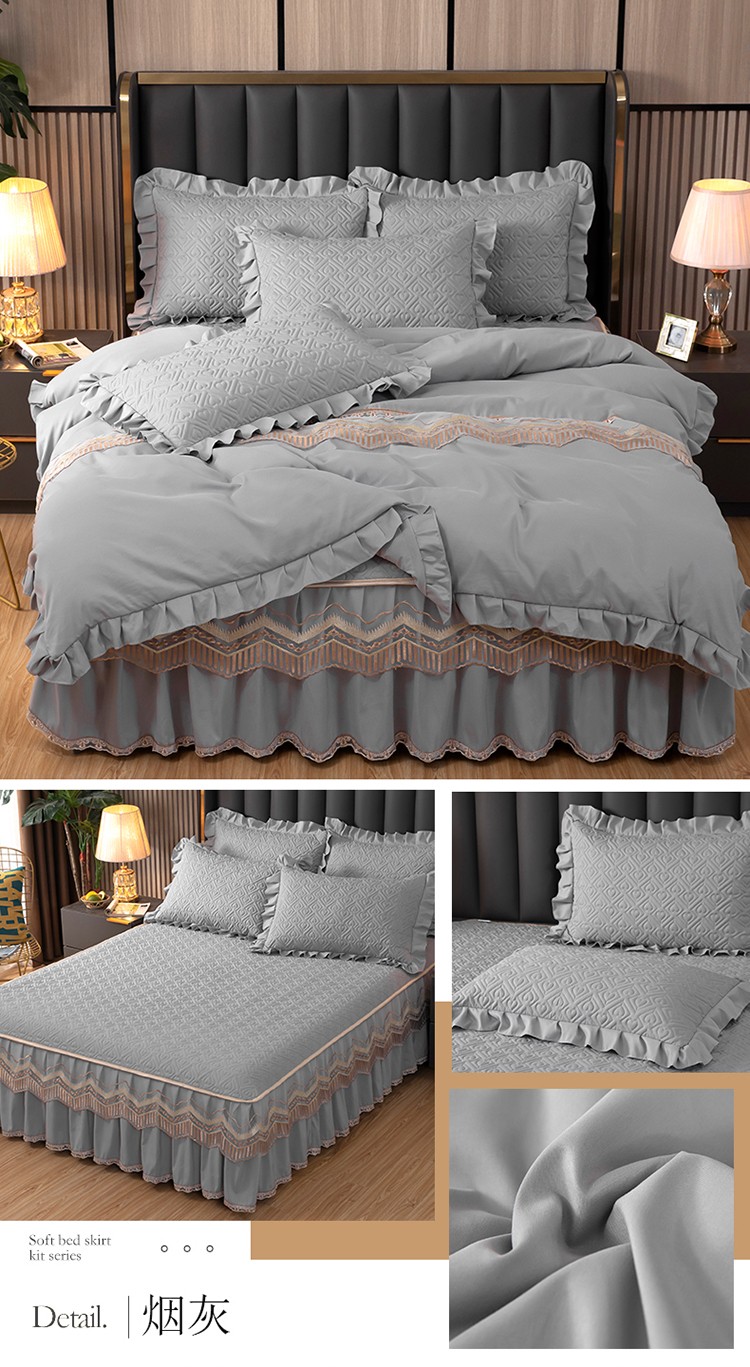 总木兰花2023新款超柔氧棉加厚磨毛韩版蕾丝夹棉床裙款四件套