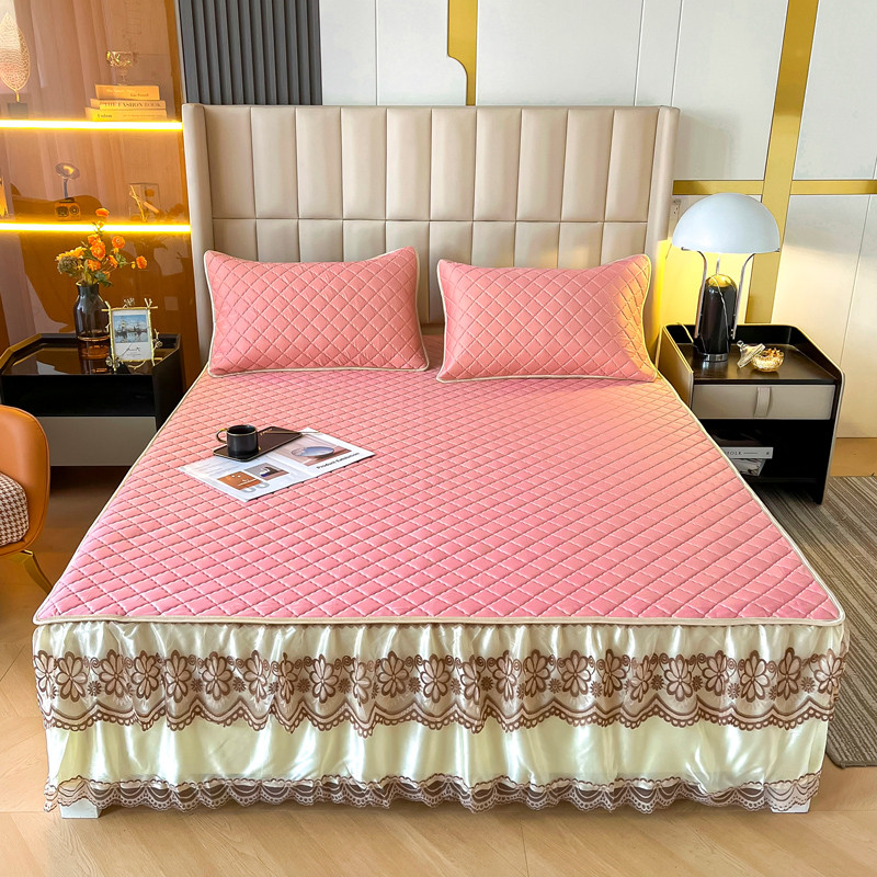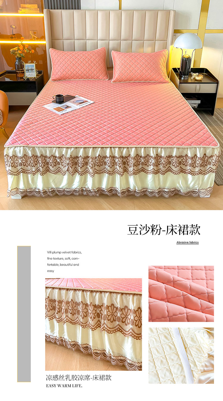 • 91家纺网 家纺一手货源 找家纺 锦罗绣 2024新款水洗乳胶凉席床裙凉席夏被四件套 豆沙粉