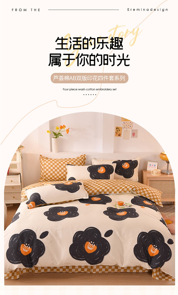 商品名称:妖妖家纺 2023新款芦荟棉AB双版印花四件套 迷恋
