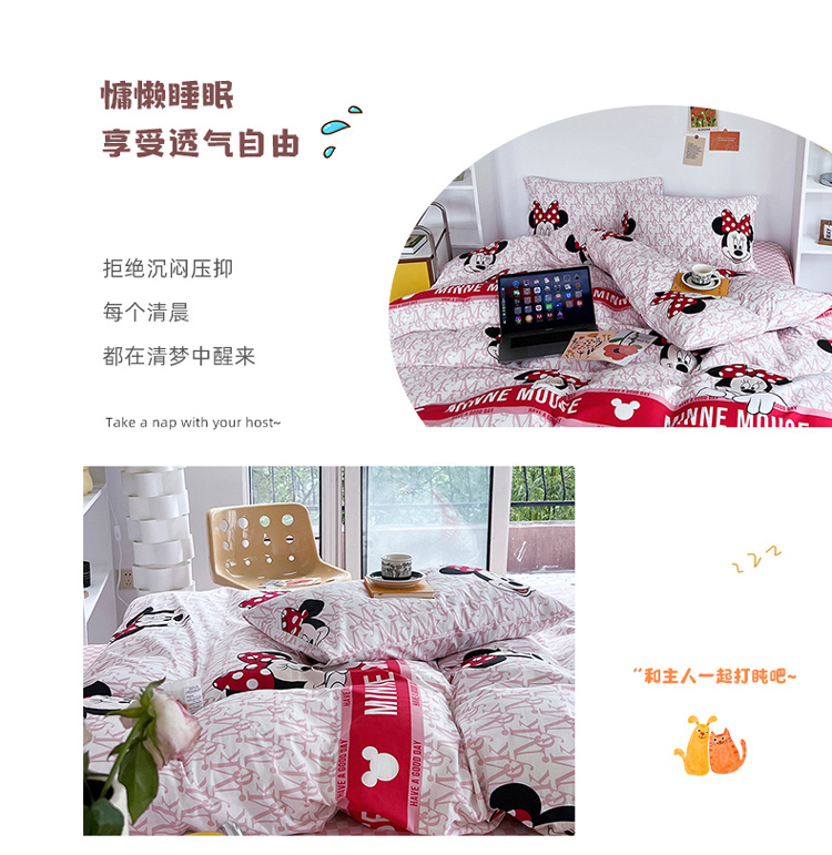 感遇 2022新款全棉迪士尼系列印花四件套 开心米妮