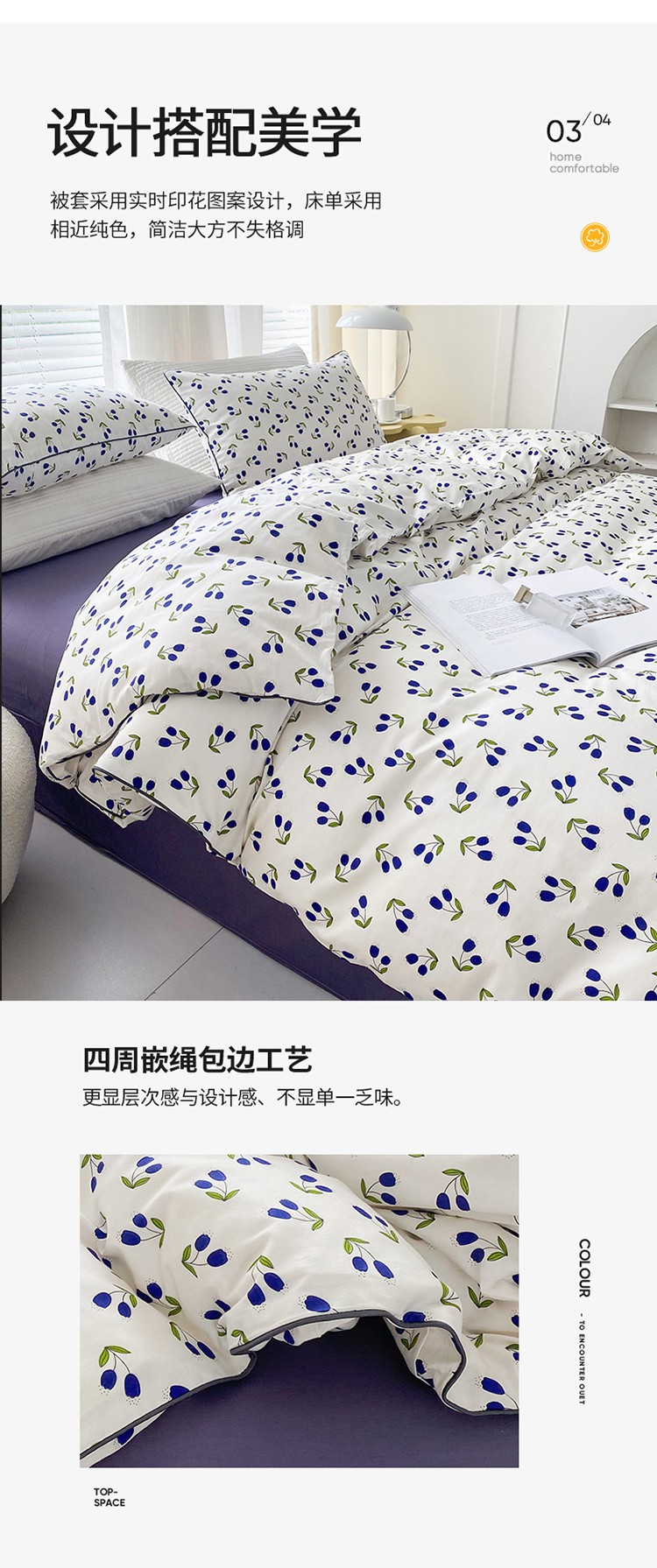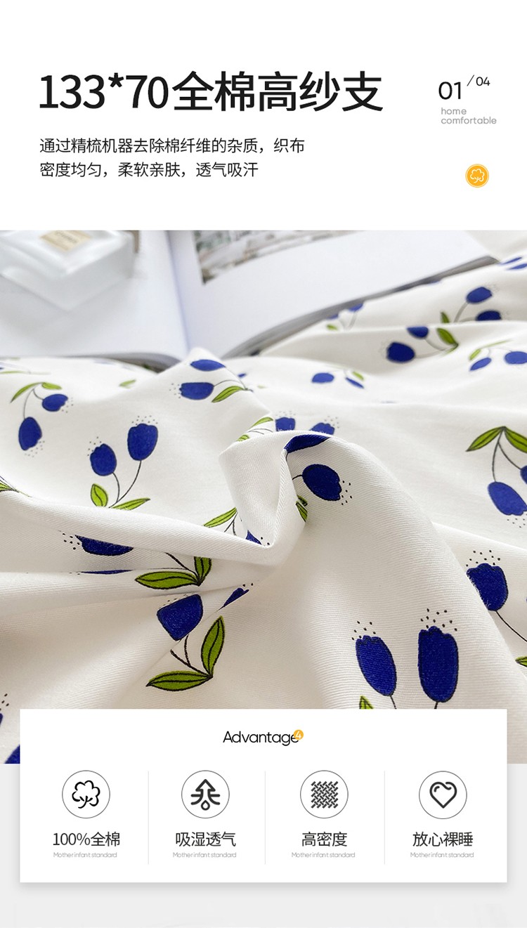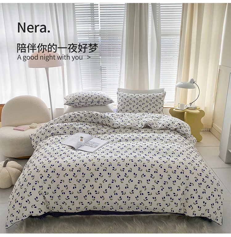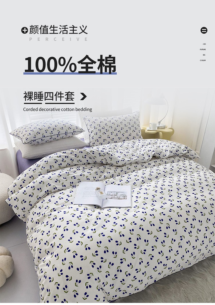 商品名称:珺柔 2022新款13070全棉印花四件套嵌绳款 小美好