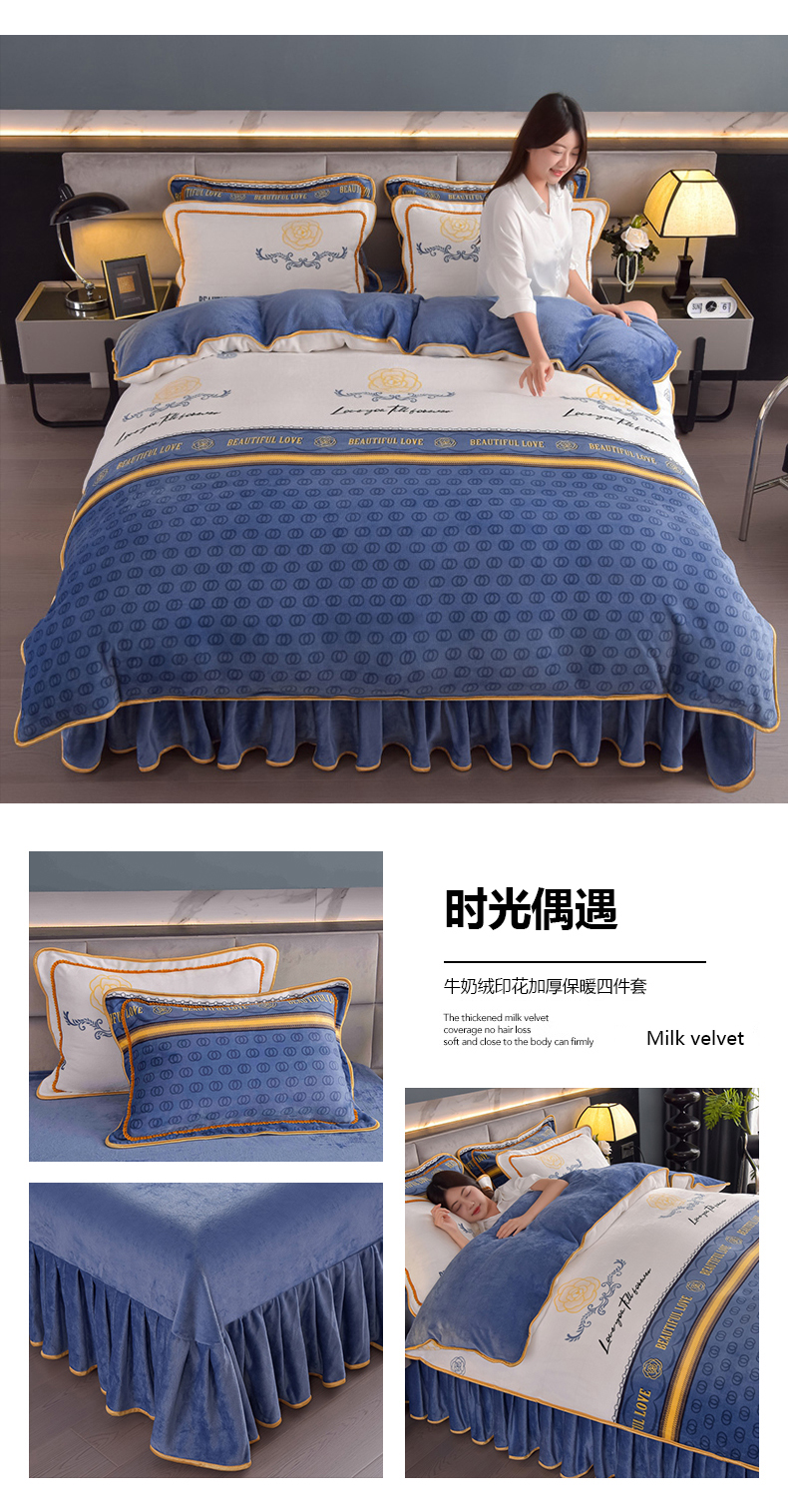 商品名称:总锦铭源家纺2025年7斤加厚印花牛奶绒四件套水晶法莱金貂绒床裙款