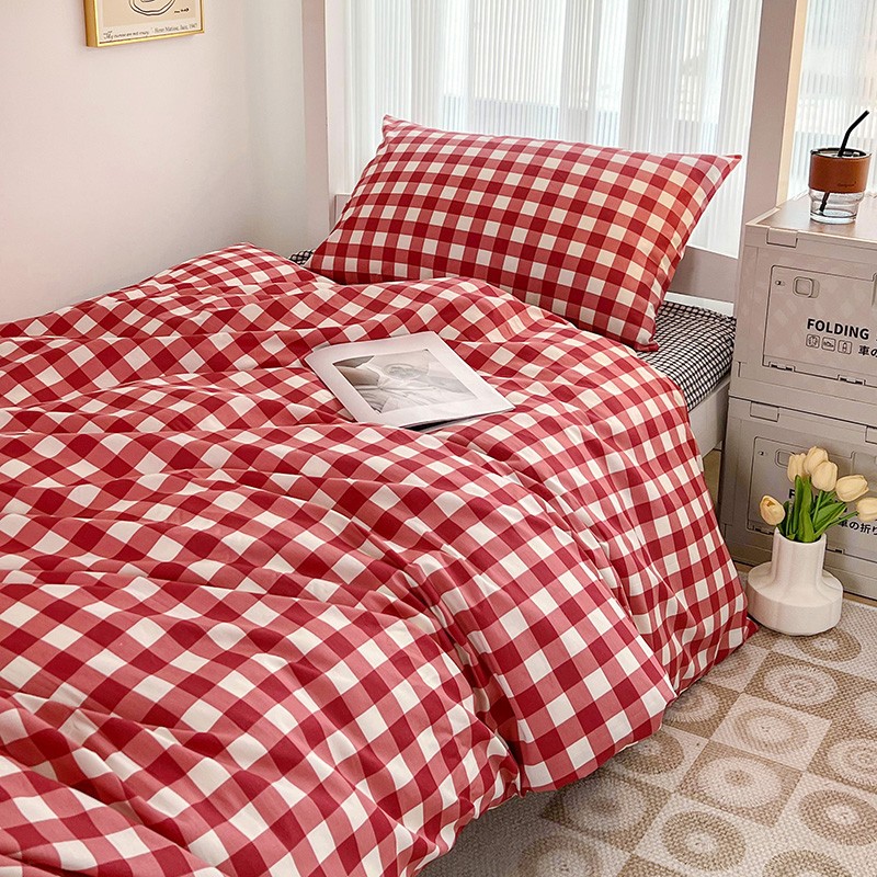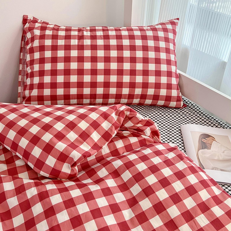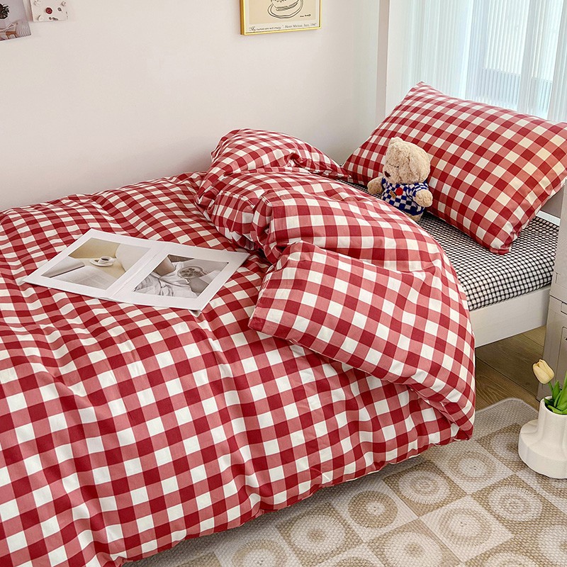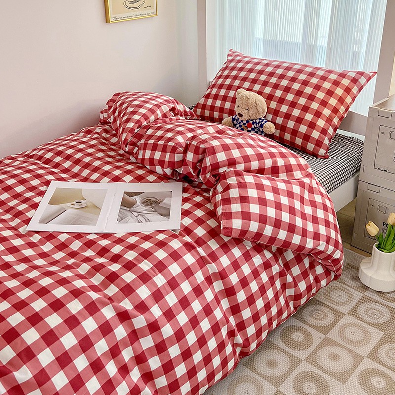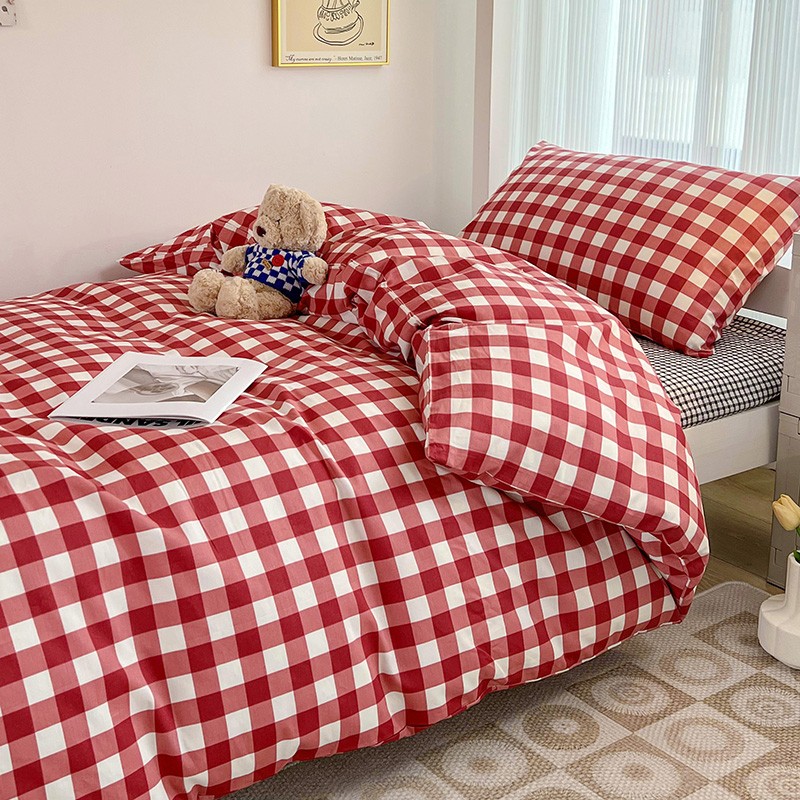 (总)昔可 2023新款全棉ins格子混搭系列四件套,ins简约绿格,粉蓝格,开心果格,学院格纹,粉绿格,海盐兰格,黄绿格,夏日蓝条,芝士黄条,紫芋泥芝士格