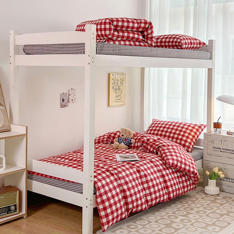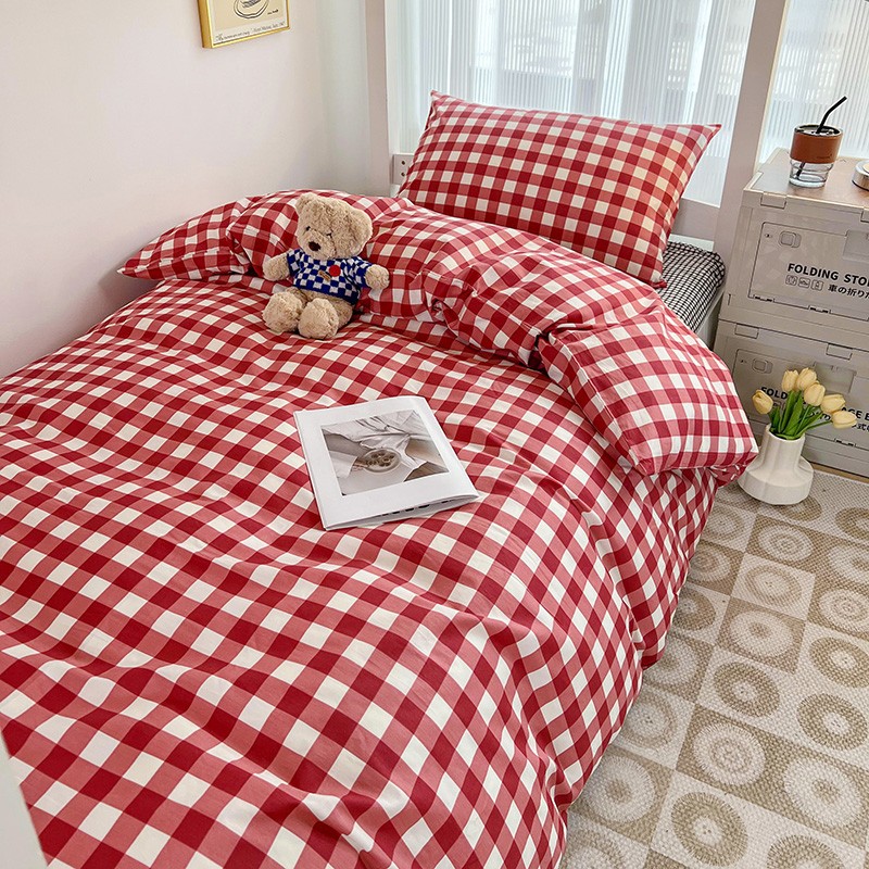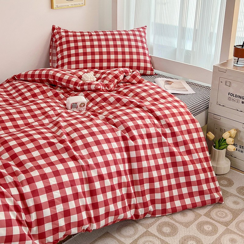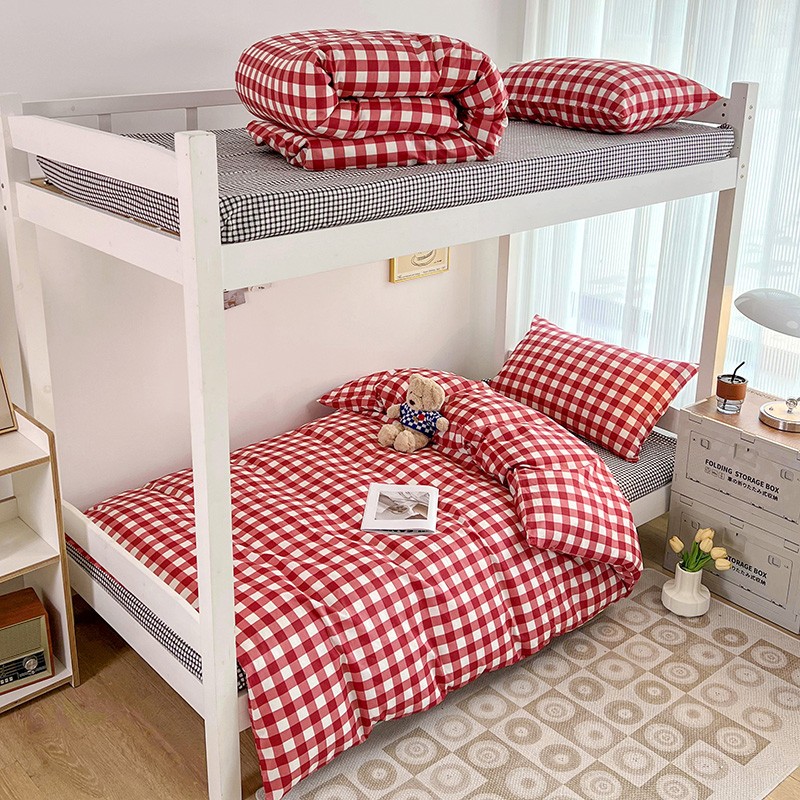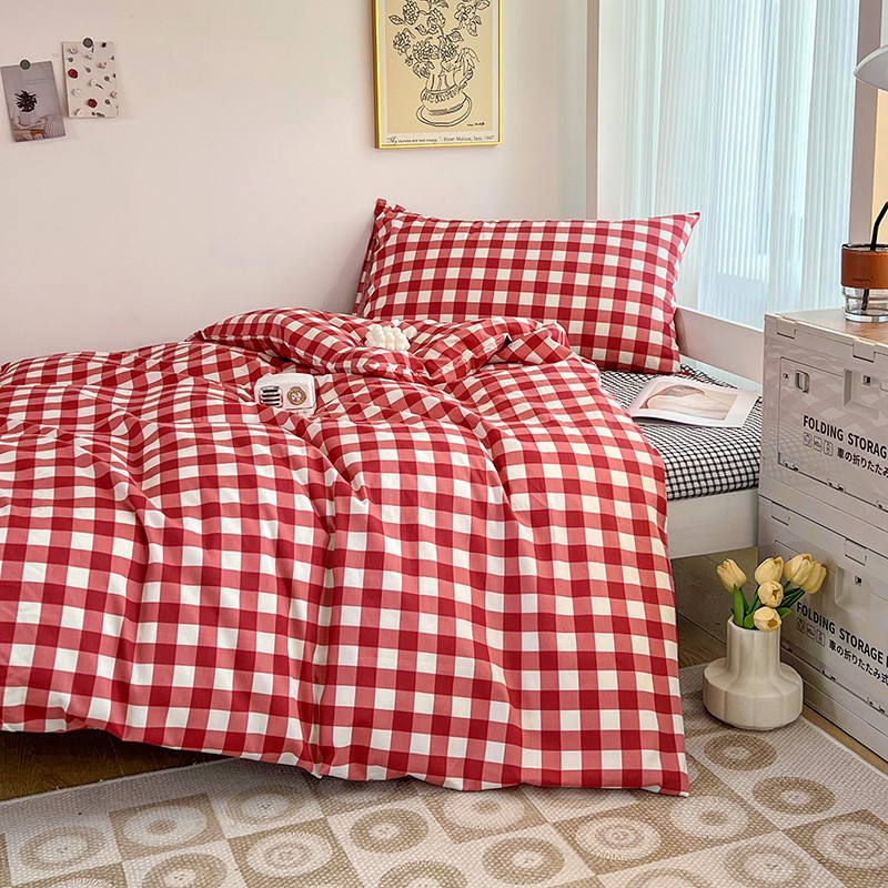 (总)昔可 2023新款全棉ins格子混搭系列四件套,ins简约绿格,粉蓝格,开心果格,学院格纹,粉绿格,海盐兰格,黄绿格,夏日蓝条,芝士黄条,紫芋泥芝士格