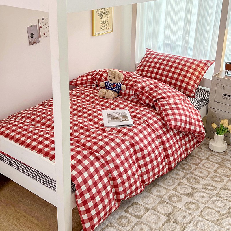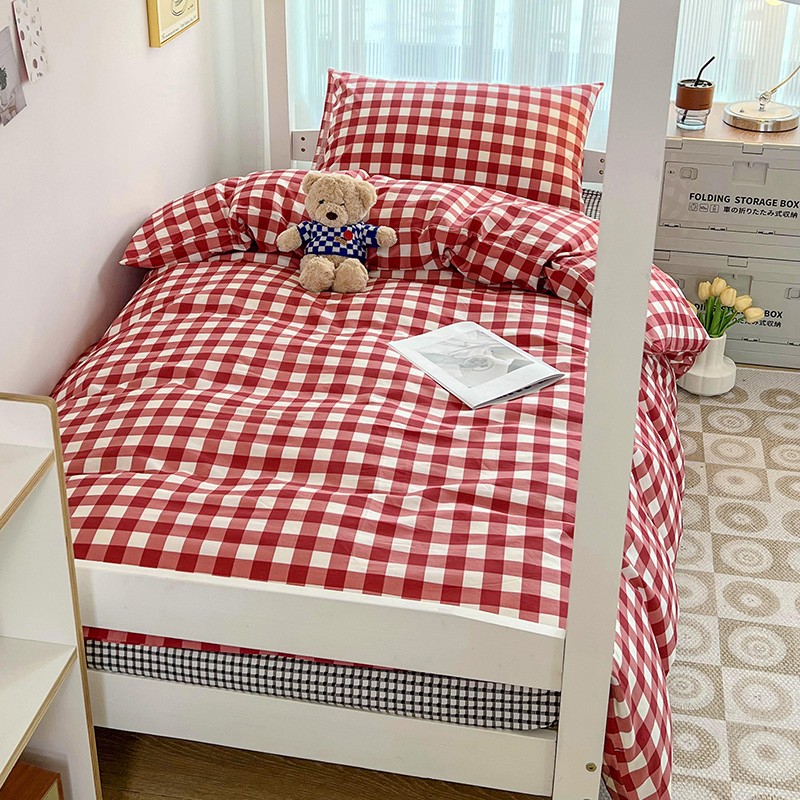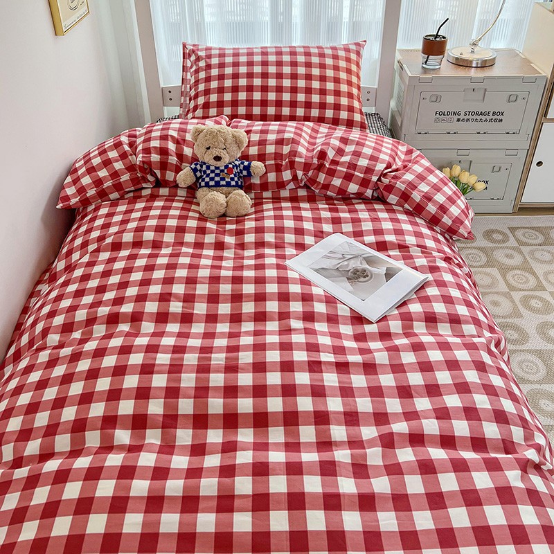 商品名称:昔可 2022新款开学季全棉卡通印花学生三件套 苏格兰红格