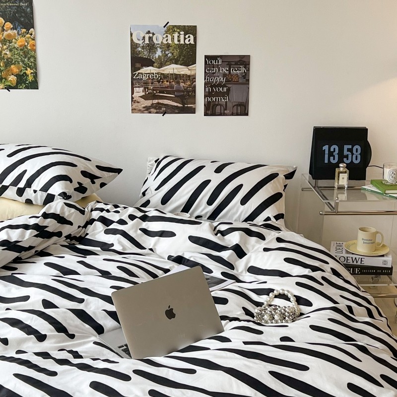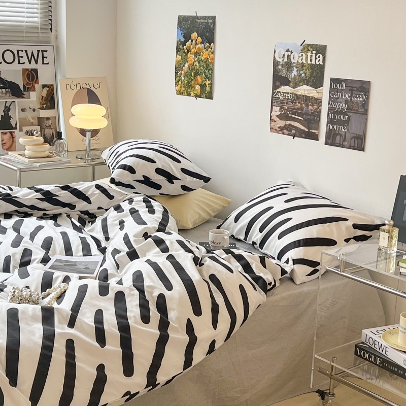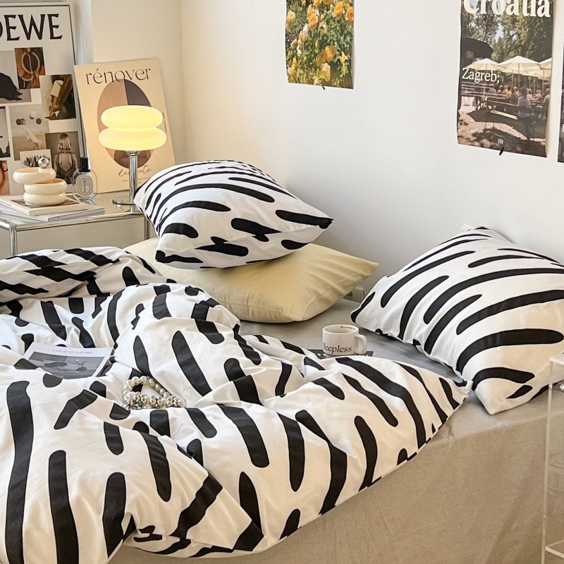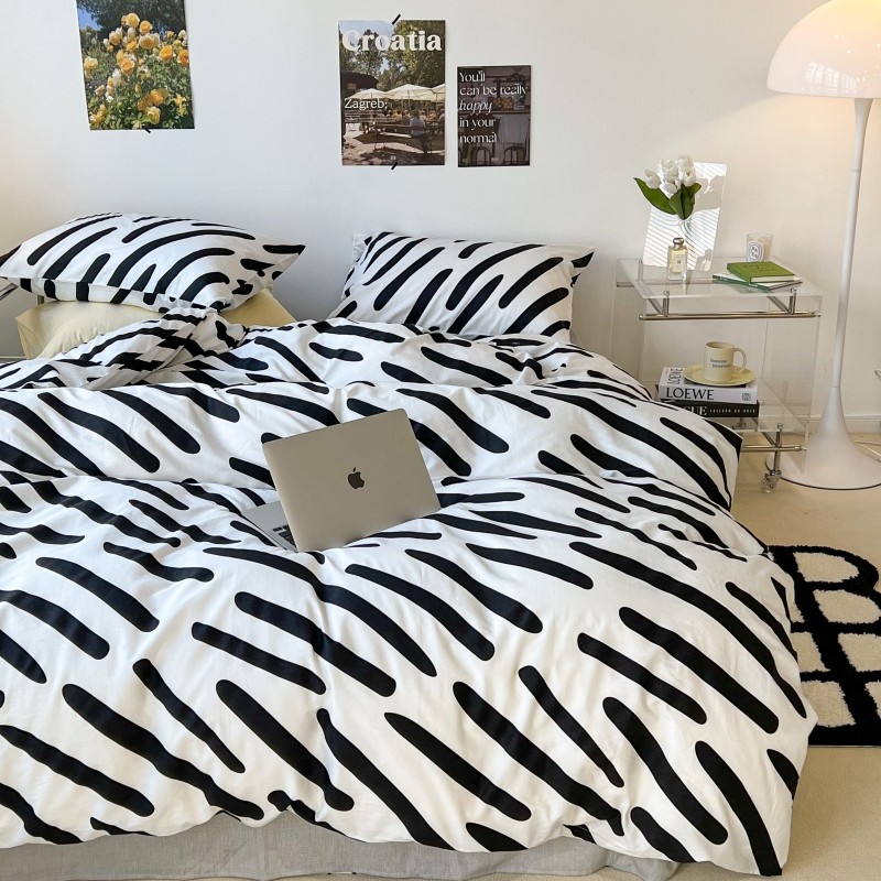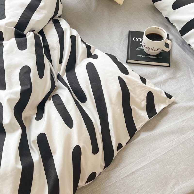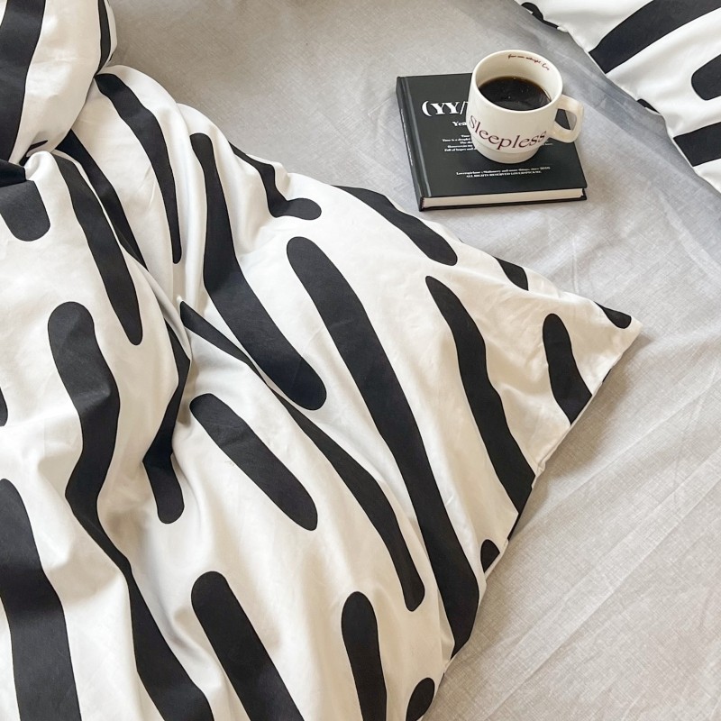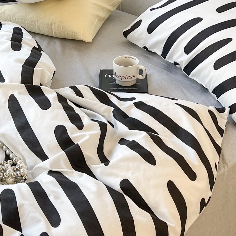 昔可家纺 2022新款简约几何北欧风全棉四件套 黑白斑马条