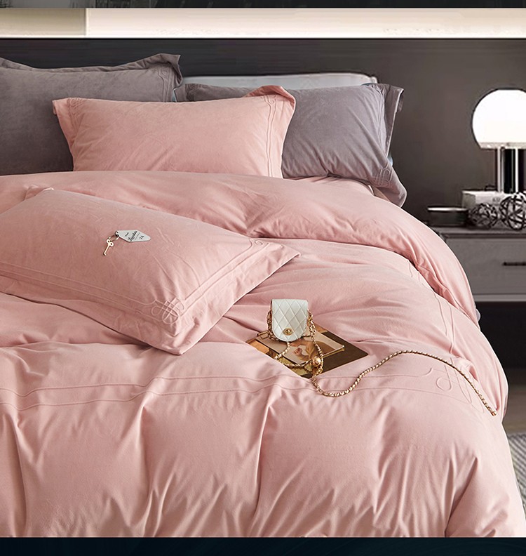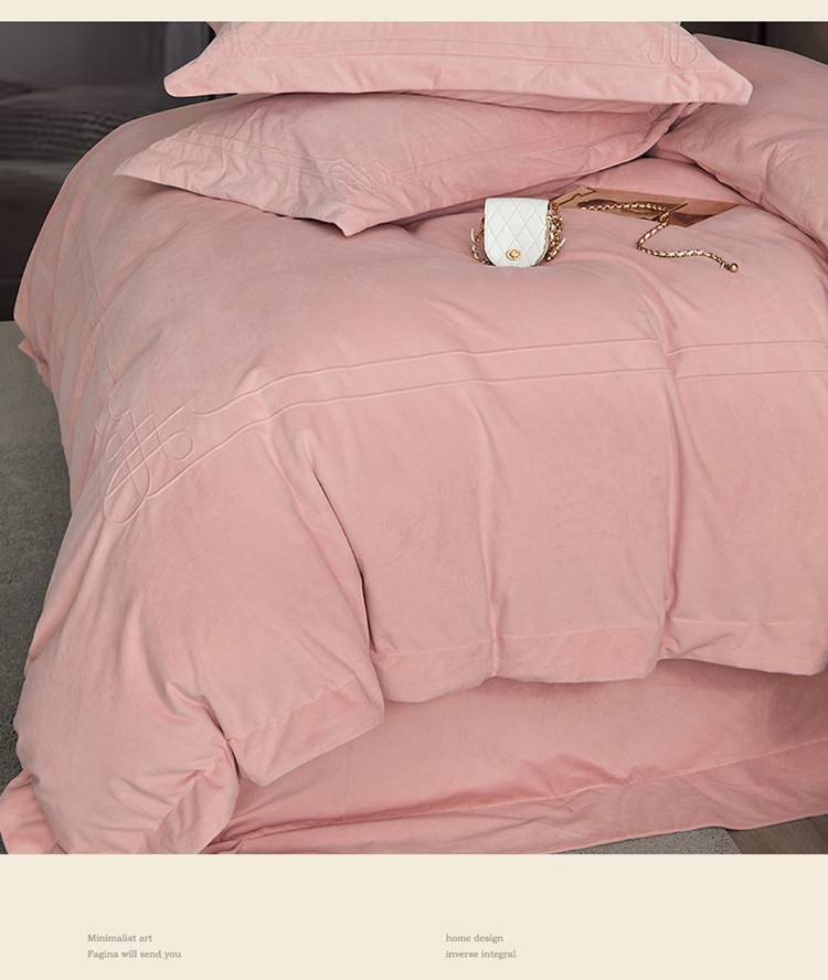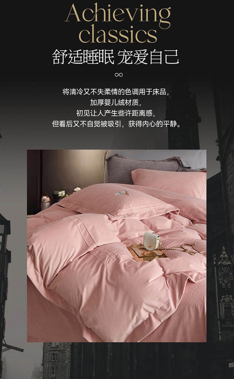 名品优仓 2022新款欧式加厚230g婴儿绒四件套 格瑞娅 温馨粉