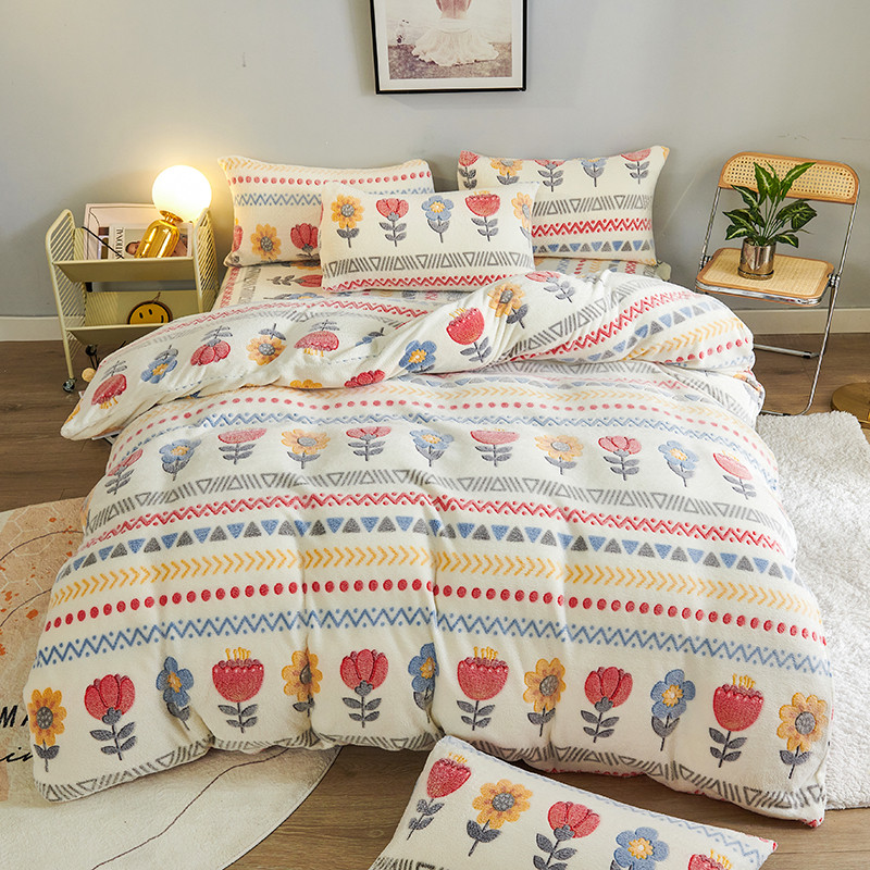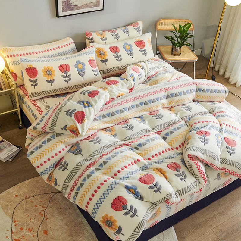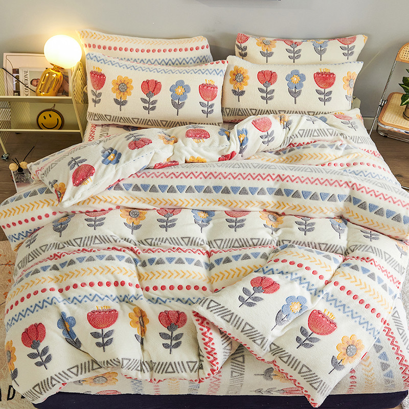 (总)被多多 2022新款高克重雪花绒保暖印花四件套,爱心彩虹,波西米亚,海底世界,蔓蔓花舞,萌萌兔,奶牛灰,牛油果,四叶草,太空漫游,樱桃女孩