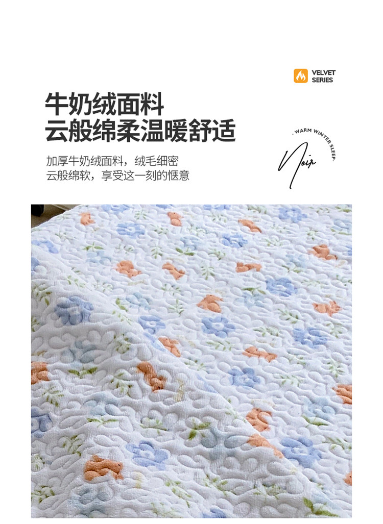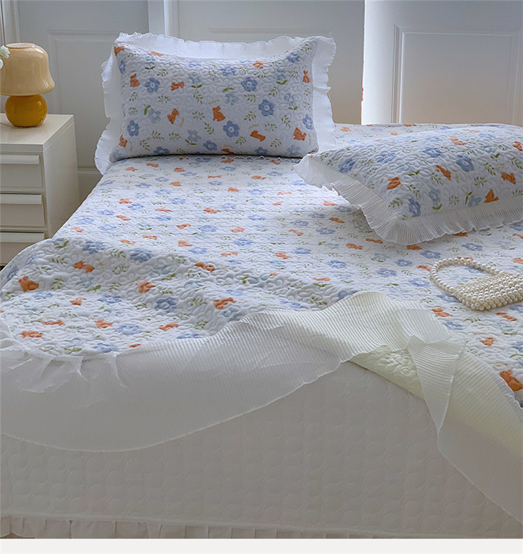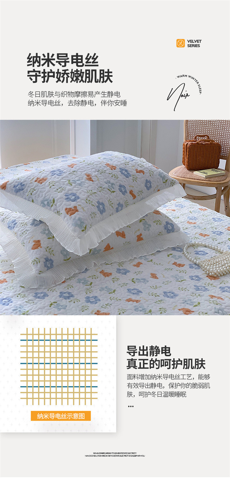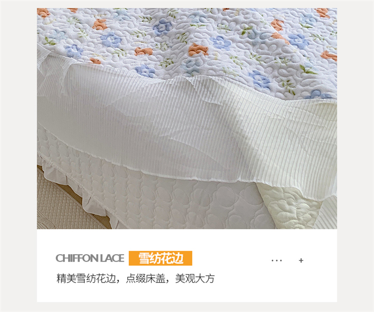 桃子ins韩版亲肤加厚牛奶绒雪纺花边床盖三件套 甜田兔