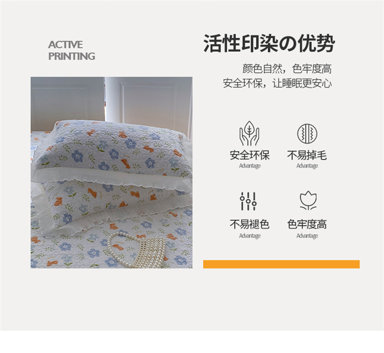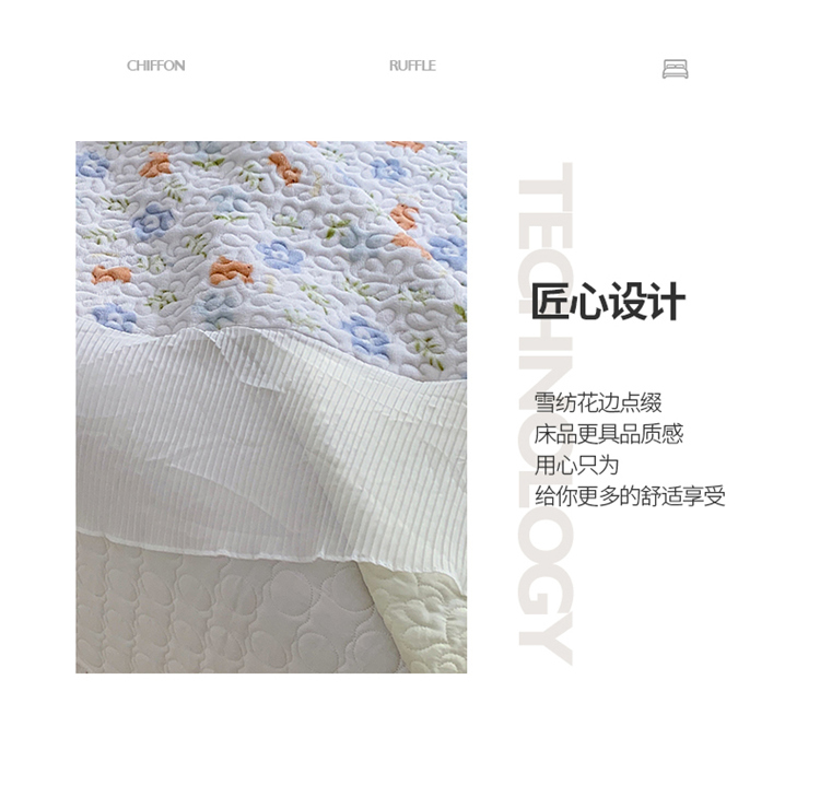 商品名称:桃子ins韩版亲肤加厚牛奶绒雪纺花边床盖三件套 甜田兔