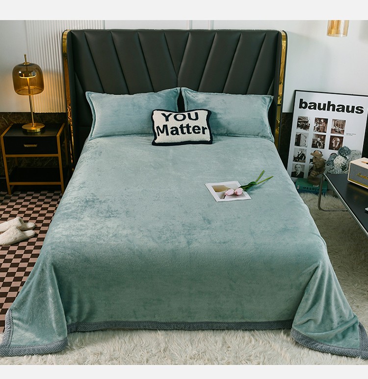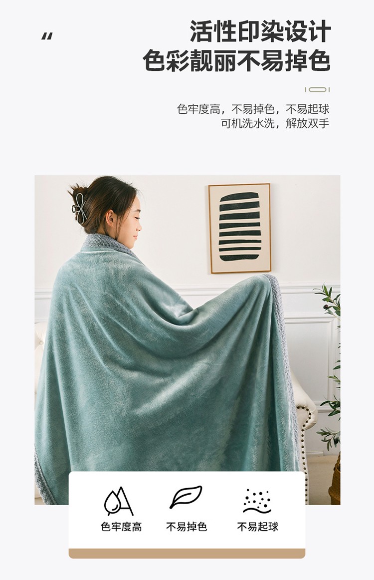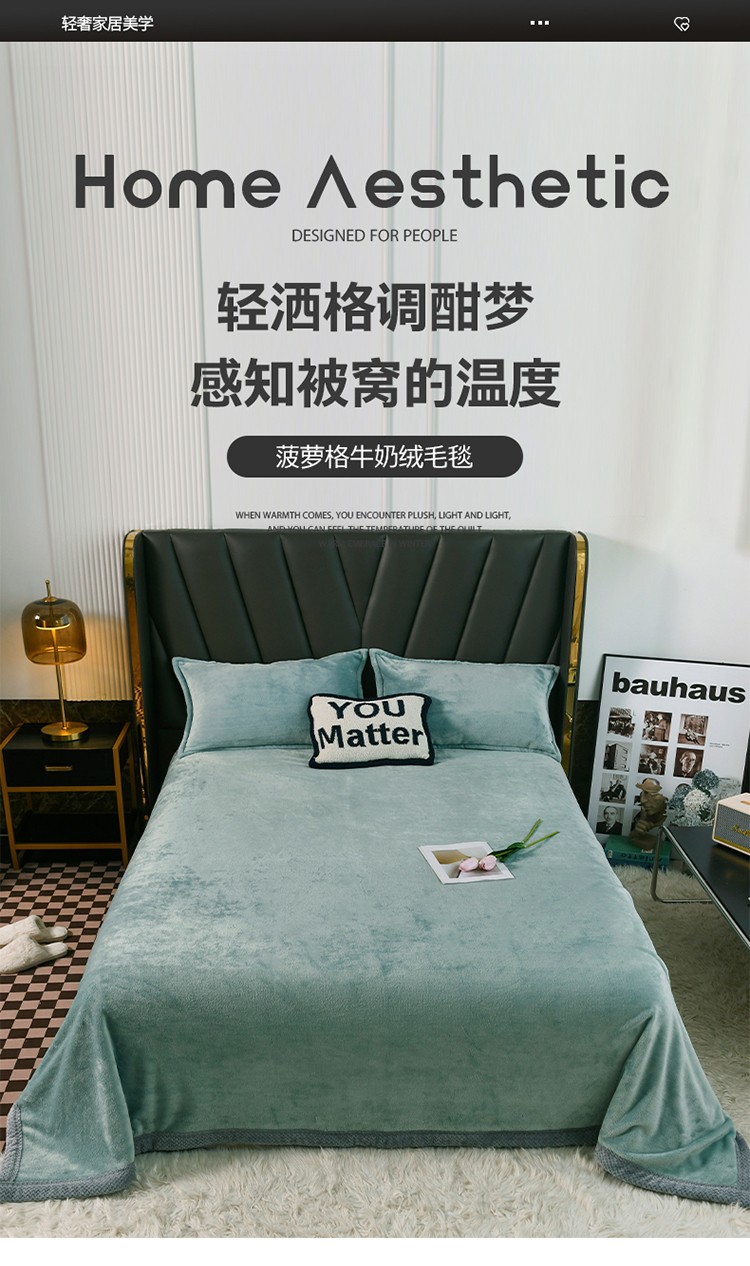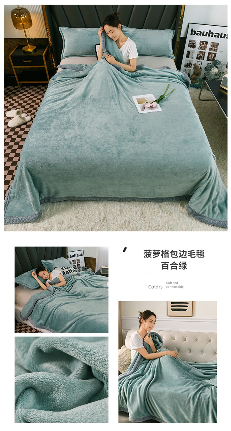 雅萱 2024新款菠萝格牛奶绒包边毛毯 百合绿