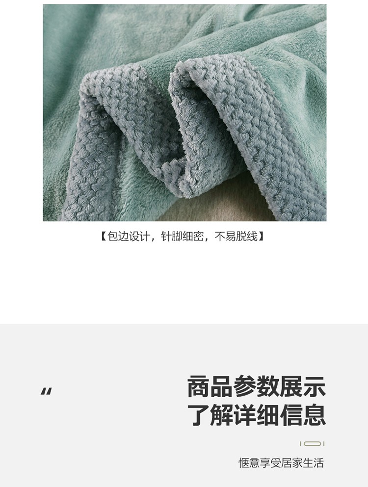 商品名称:雅萱 2024新款菠萝格牛奶绒包边毛毯 百合绿