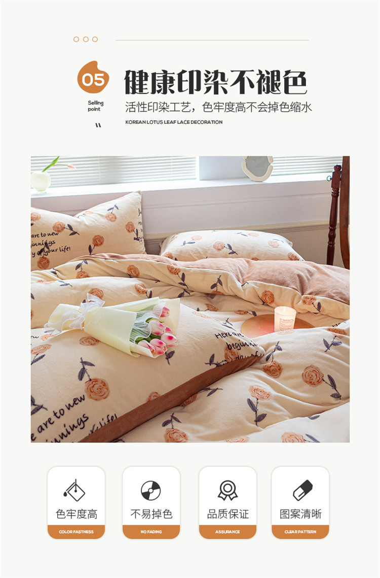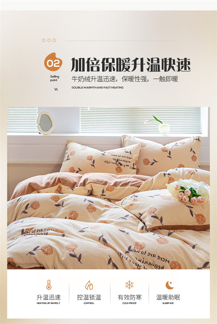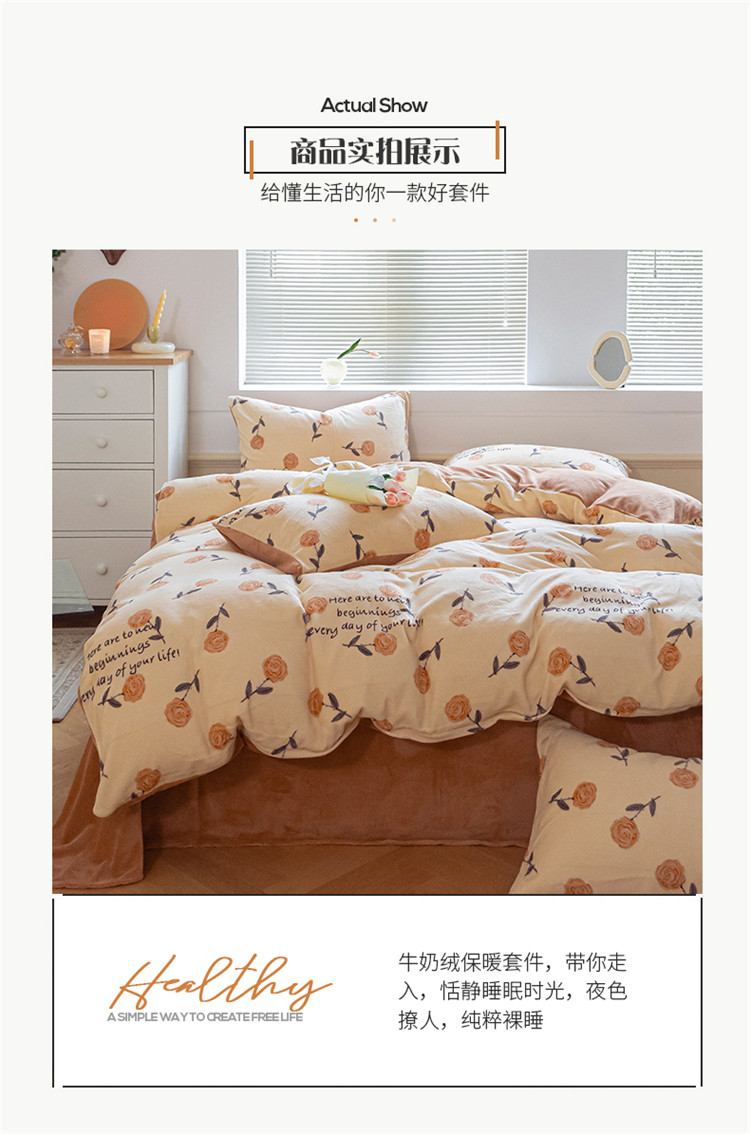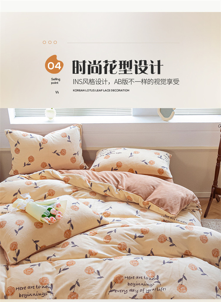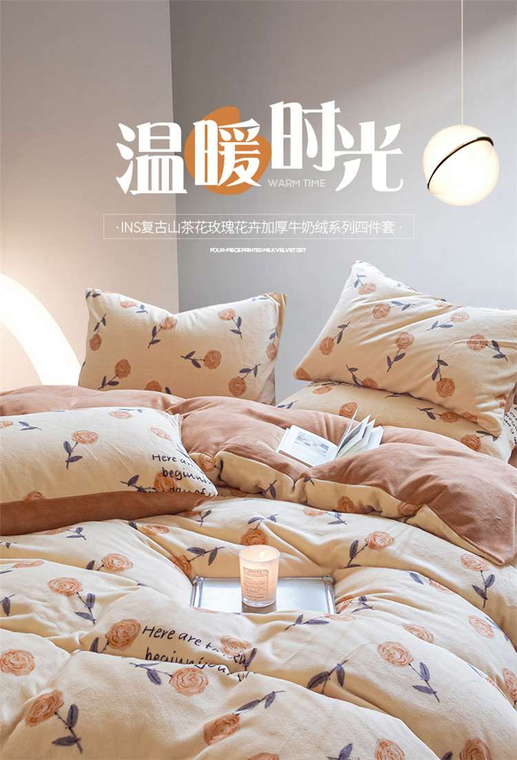 商品名称:桃子ins复古山茶花玫瑰花卉加厚牛奶绒系列四件套 绒-佳人