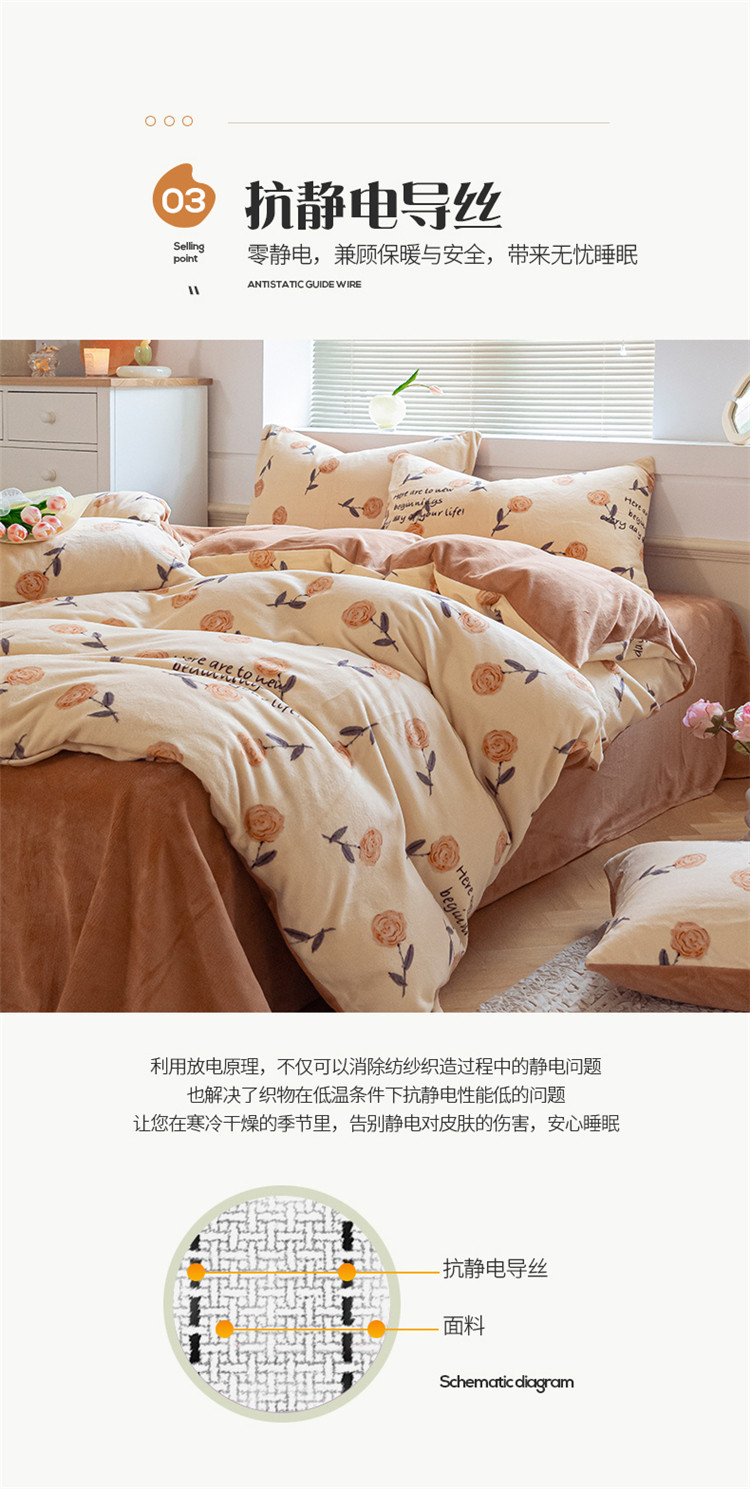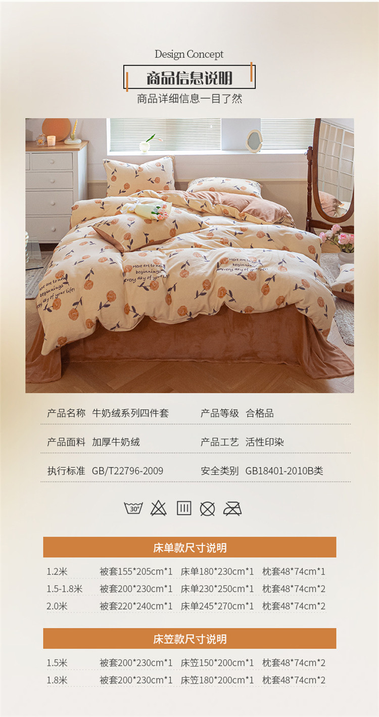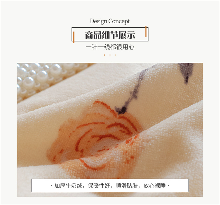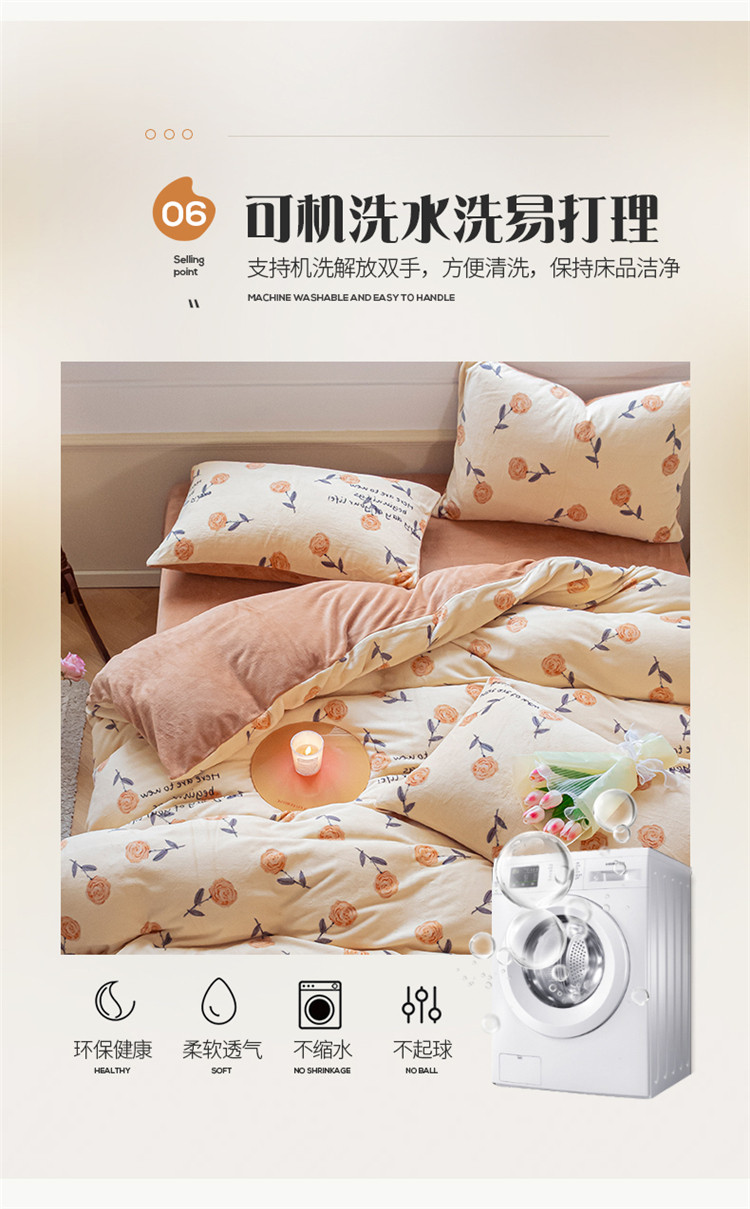 商品名称:桃子ins复古山茶花玫瑰花卉加厚牛奶绒系列四件套 绒-佳人