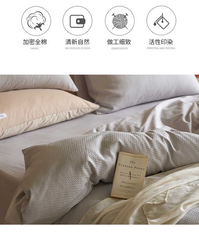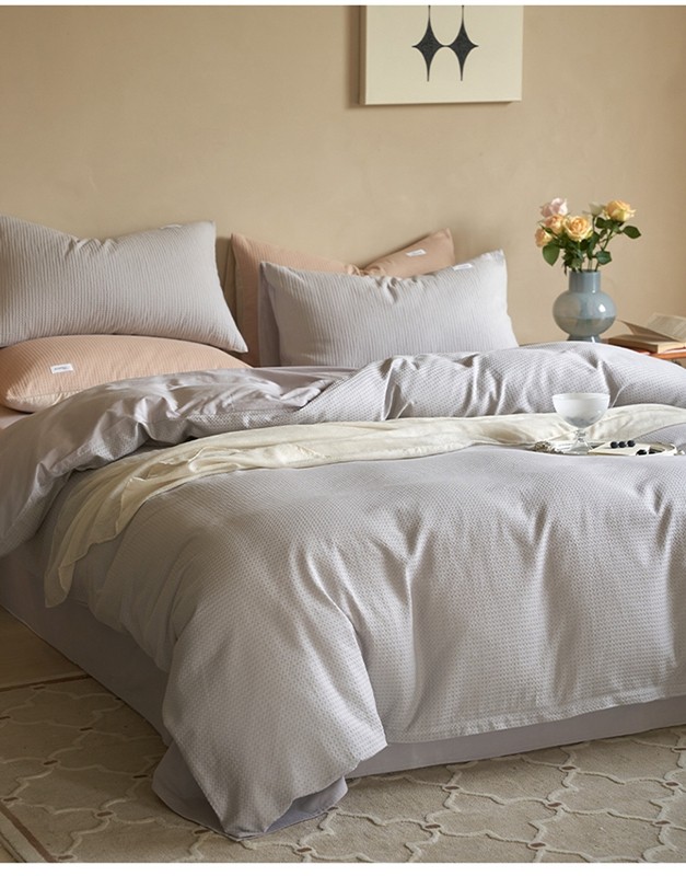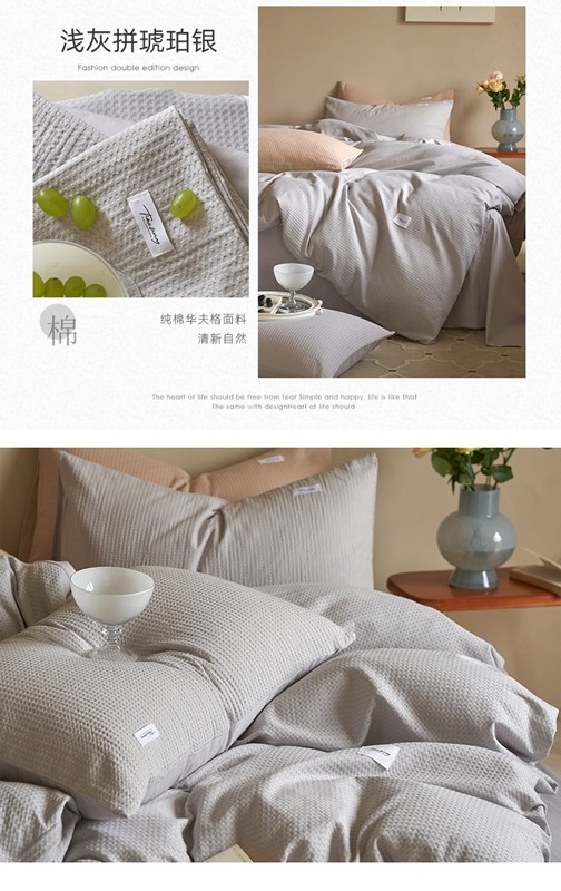 当前位置: 91家纺网 > 商品网购 > 床品套件 > 四件套 > 全棉普通四件套 > 时光里 2022新款60支纯棉华夫格系列四件套 浅灰拼琥珀银