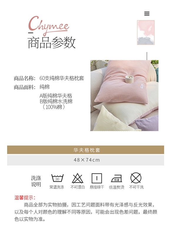 商品名称:(总)时光里 新款60支纯棉华夫格系列-枕套48x74cm