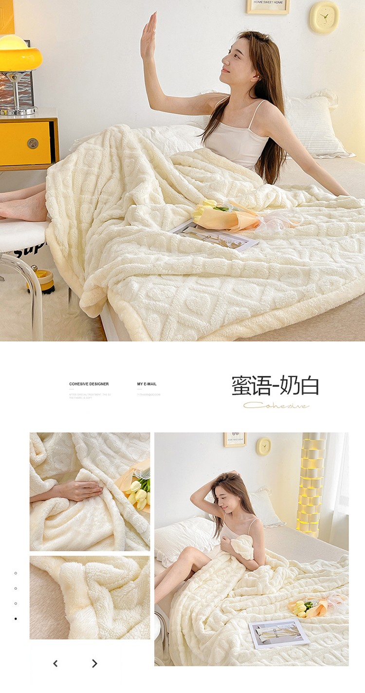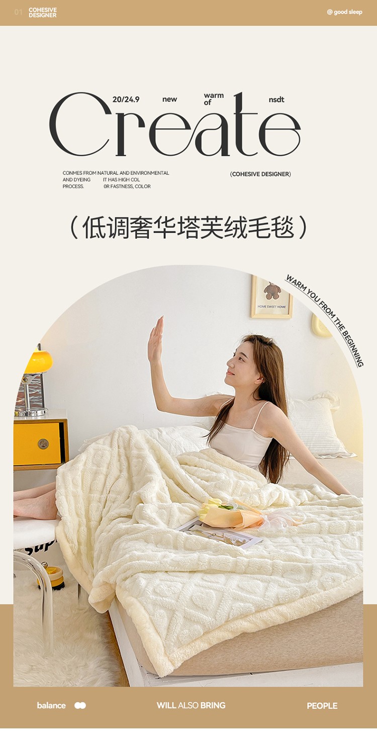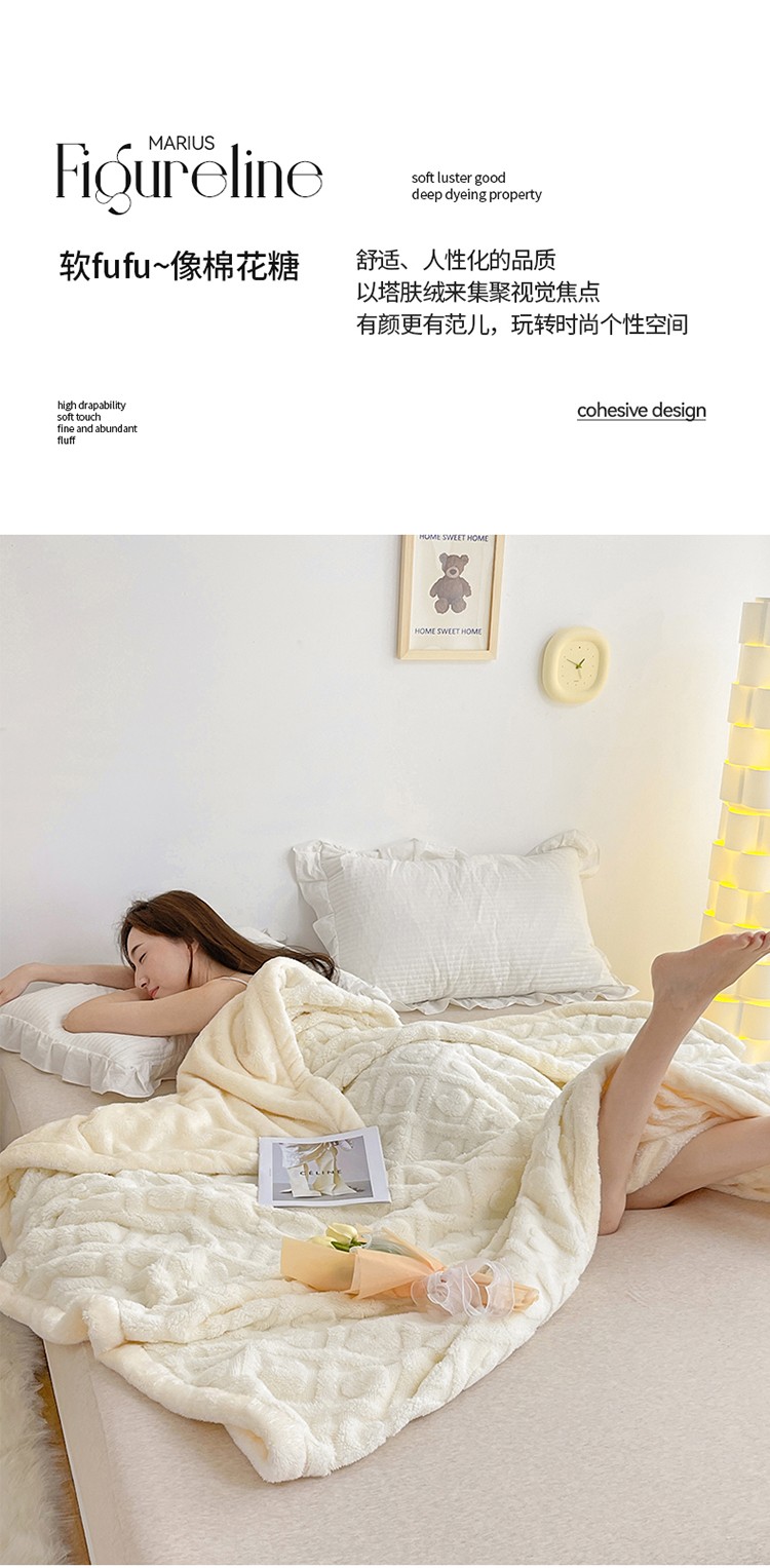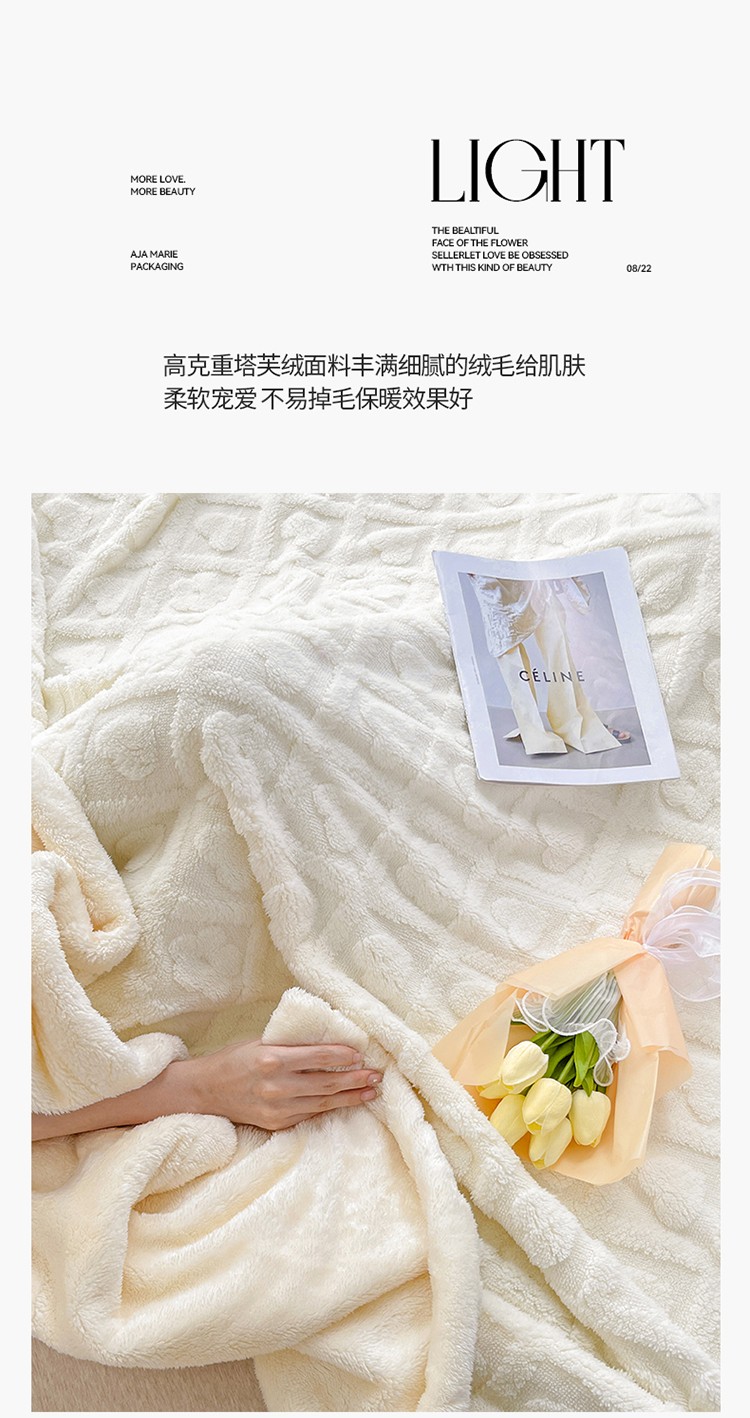 商品名称:澳梵 2022新款塔芙绒毛毯【蜜语-心语系列】 蜜语-奶白