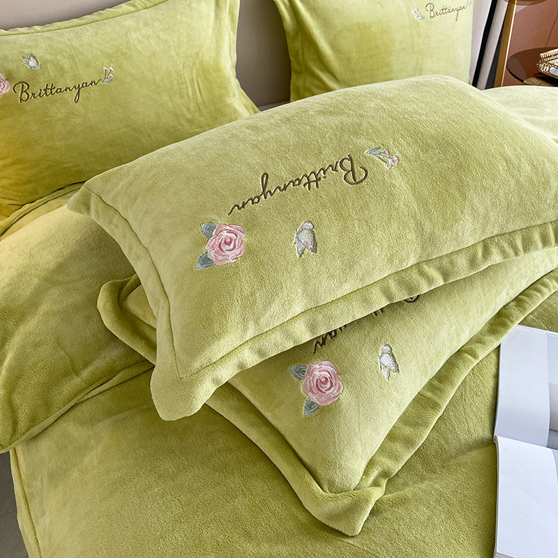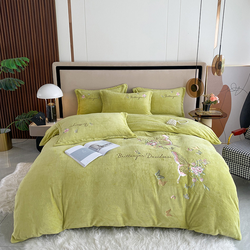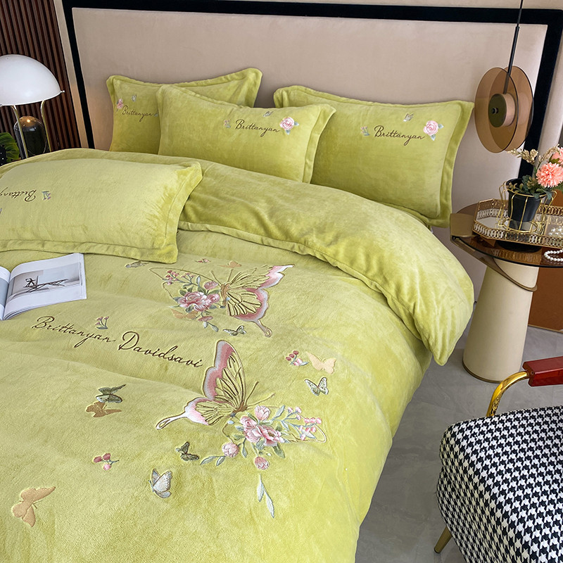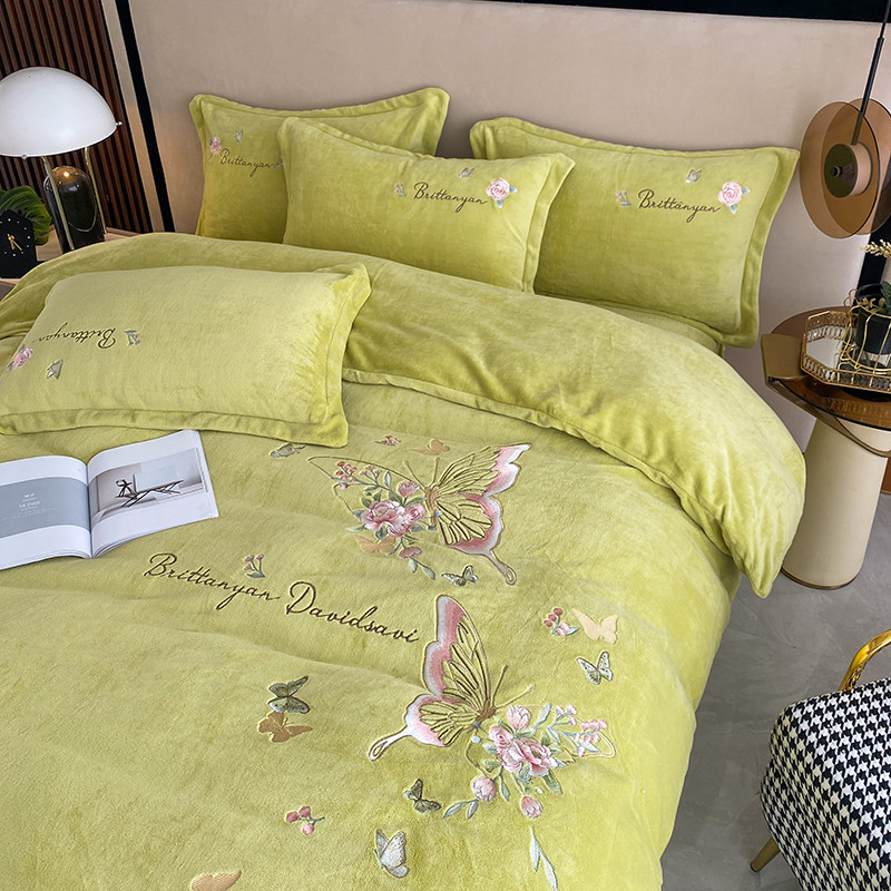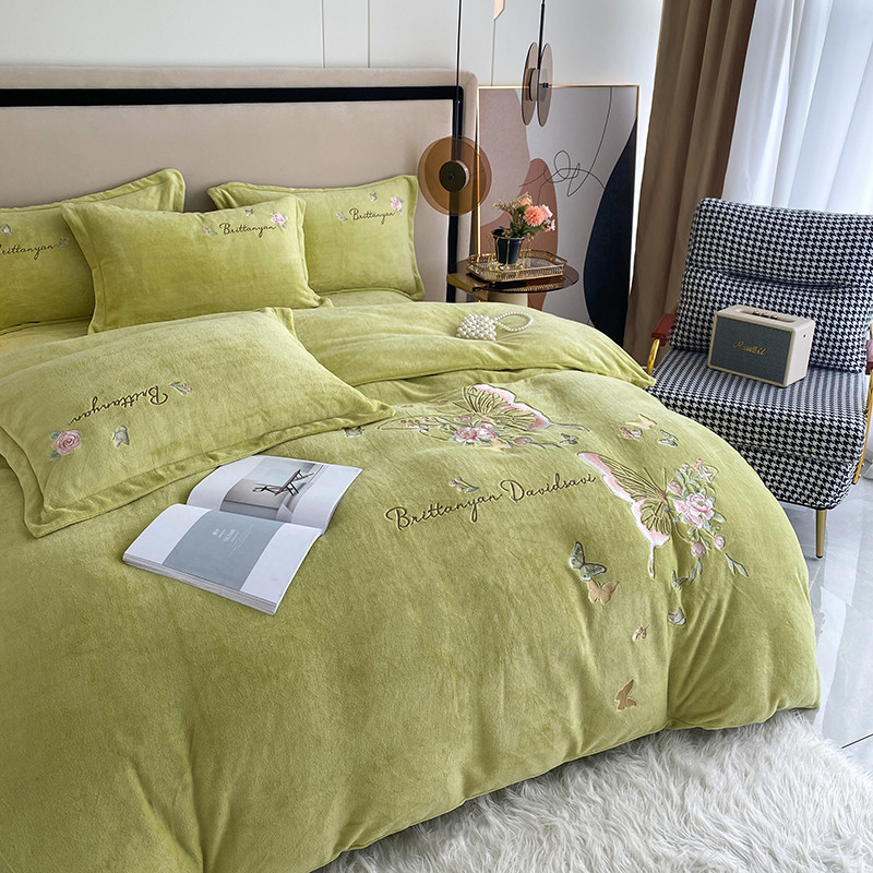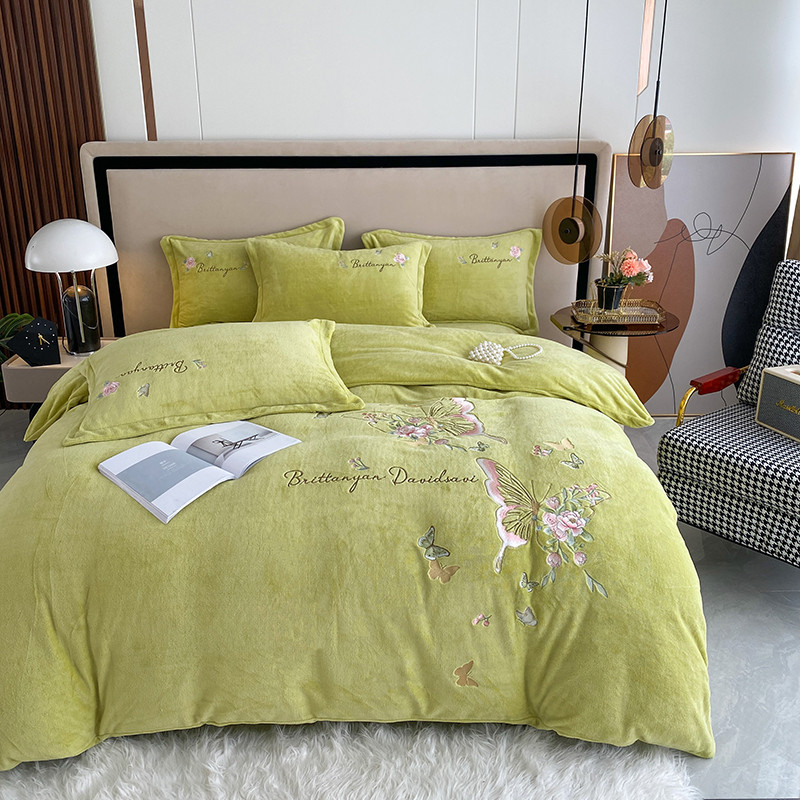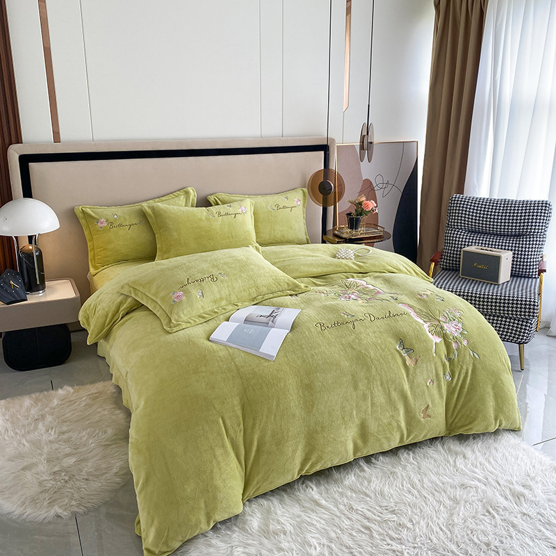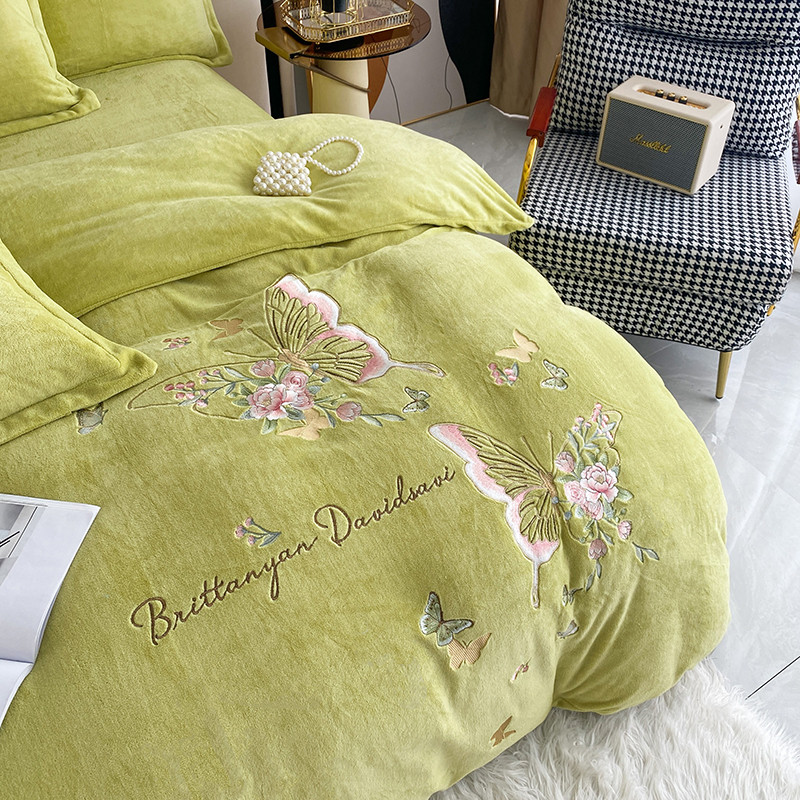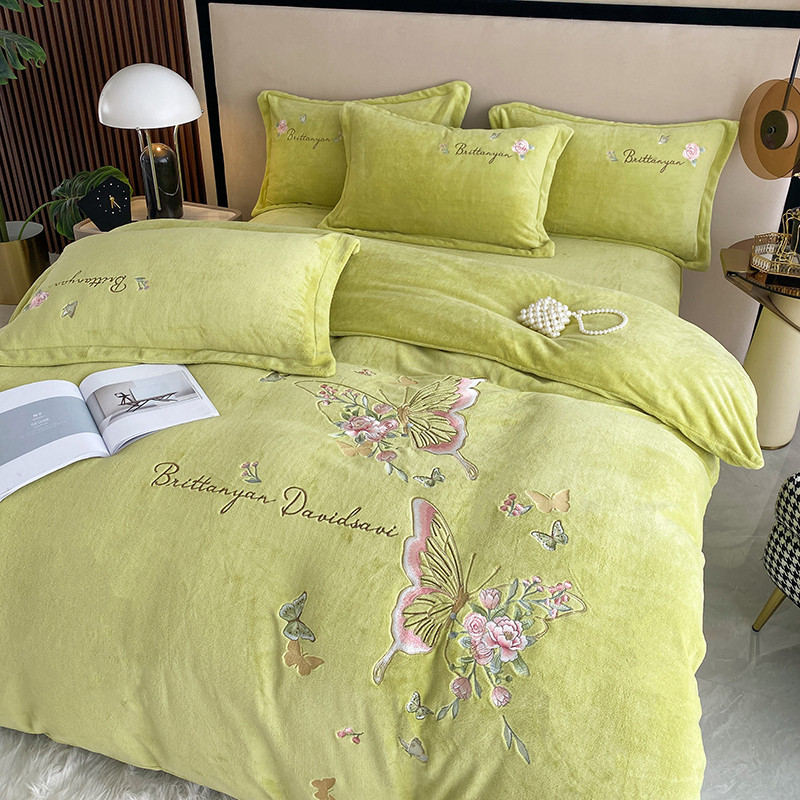 梦莱斯 2022新款牛奶绒四件套-蝶恋花 西芹绿