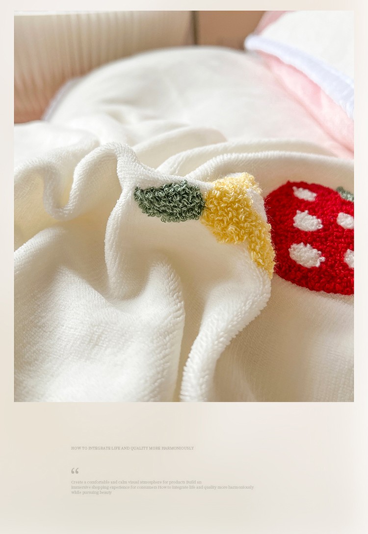 商品名称:芯贝儿 新款加厚保暖雕花牛奶绒毛巾绣花宝宝法莱绒四件套 草莓兔米白