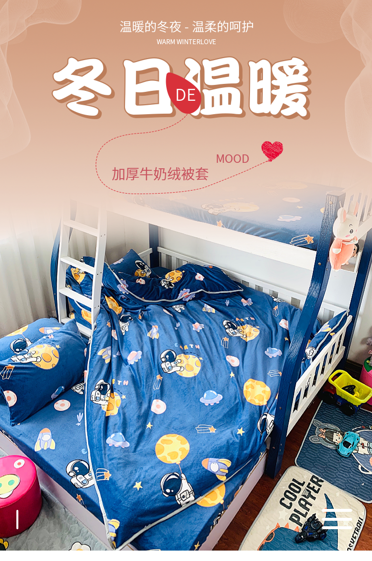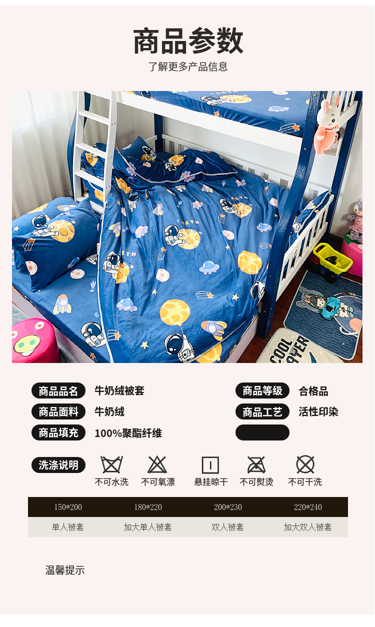 商品名称:小虾米 2022新款加厚牛奶绒被套单件套三件套 遨游太空
