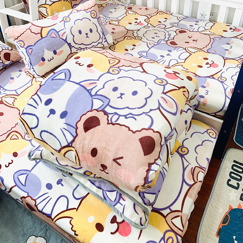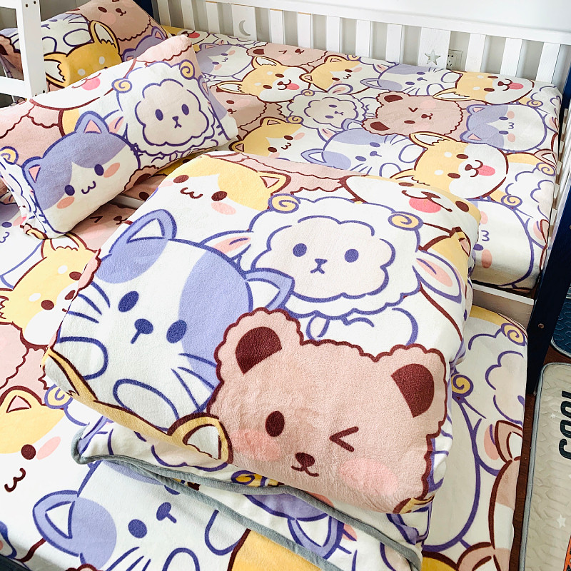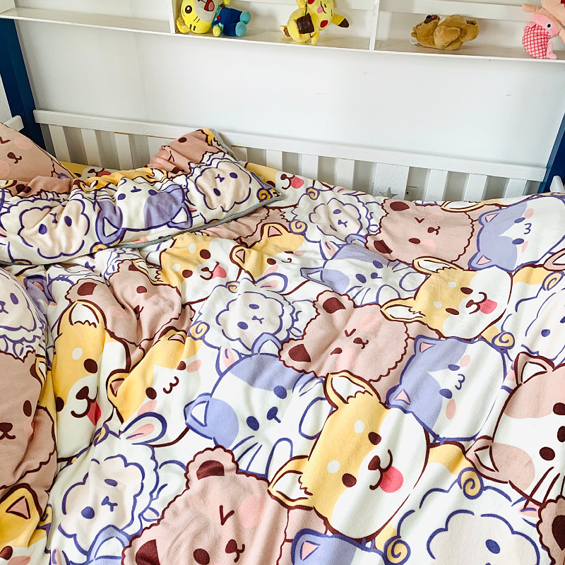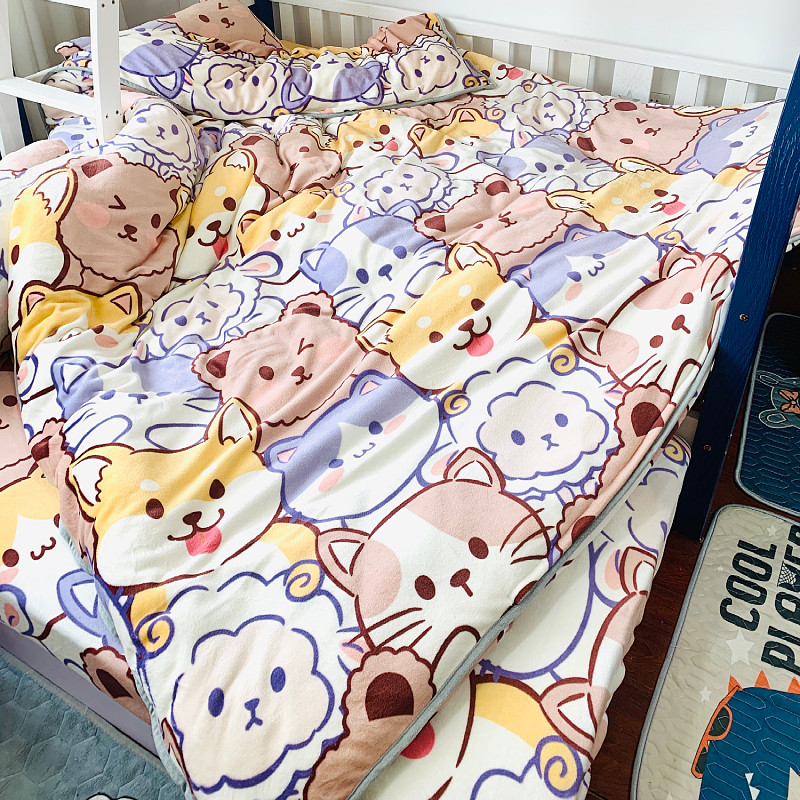 小虾米 2022新款加厚牛奶绒被套单件套三件套 萌犬