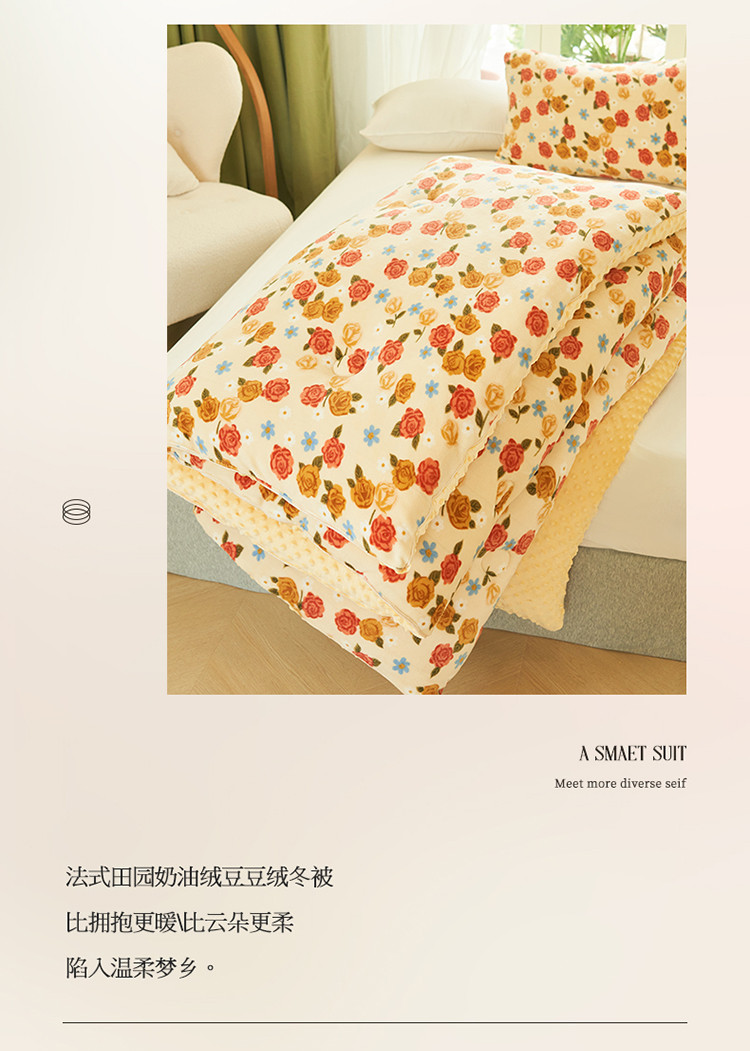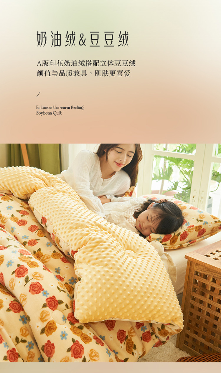 商品名称:晨曦 2022新款法式田园奶油绒豆豆绒大豆棉冬被 洛可奶酥