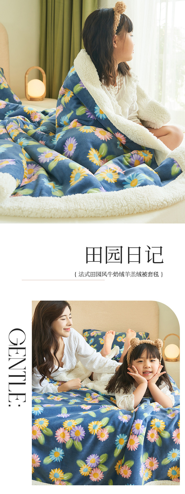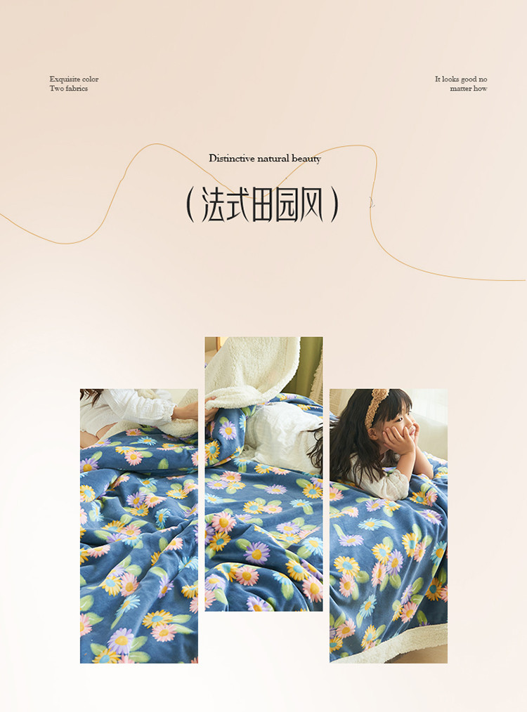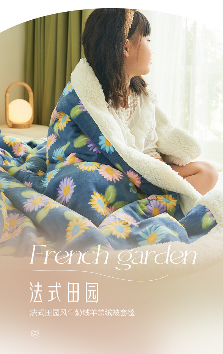 商品名称:晨曦家纺 2022新款法式田园风牛奶绒羊羔绒被套毯 田园日记