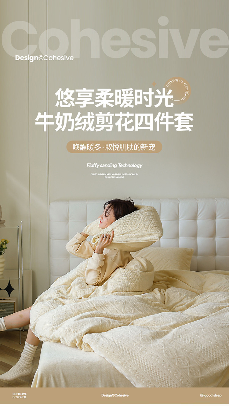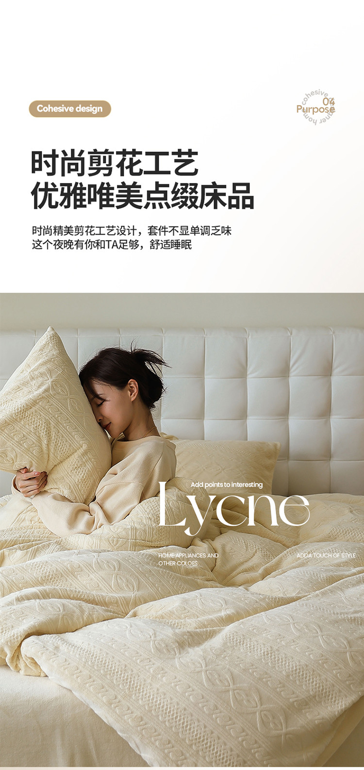 当前位置: 91家纺网 > 商品网购 > 床品套件 > 四件套 > 牛奶绒四件套 > 寐眠 2022新款牛奶绒剪花四件套 泡芙米