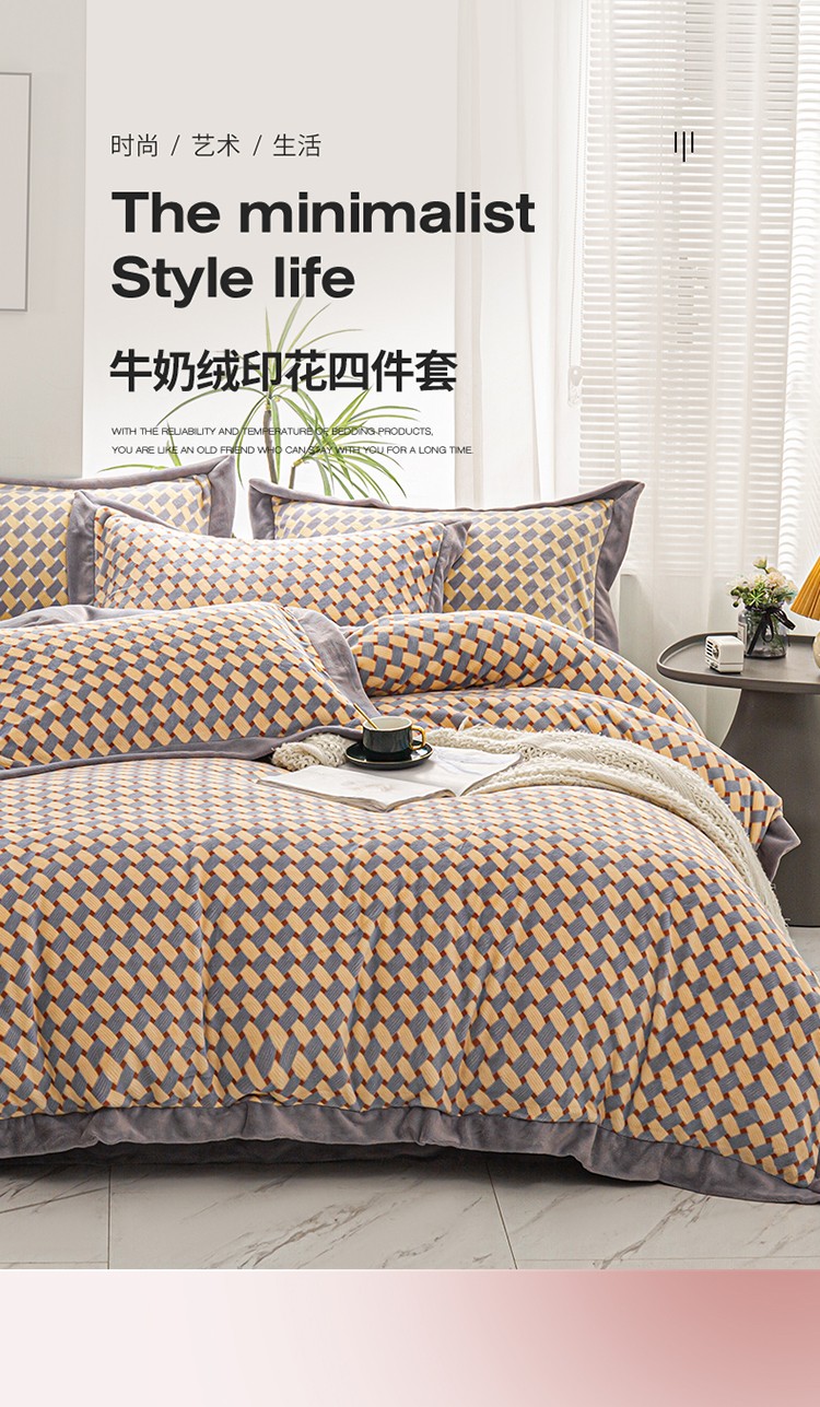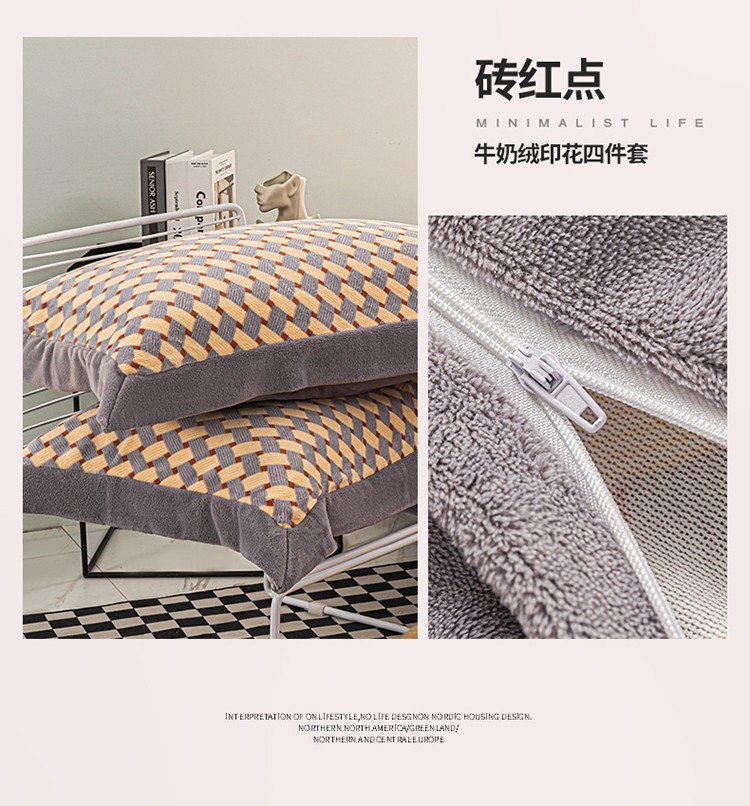 商品名称:名品优仓2022新款牛奶绒印花款230克四件套-麦瑞格 砖红点