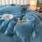 冬天撸猫感牛奶绒床上四件套双面保暖珊瑚绒镂空边被套爱丽雾霾蓝