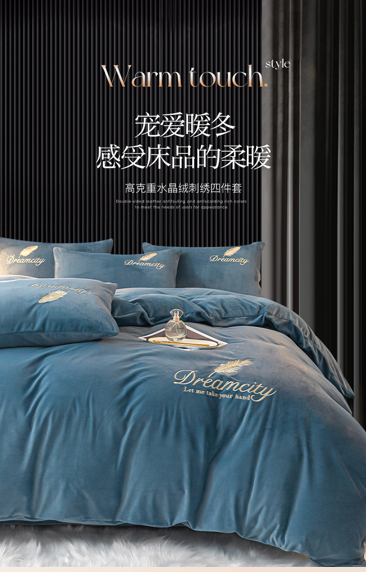 (总)如一 2025新款水晶绒刺绣四件套,轻羽-宾利蓝,轻羽-奶白咖,轻羽-安娜紫,轻羽-典雅灰,轻羽-豆沙灰,轻羽-梵星兰,轻羽-高级灰,轻羽-落日橙,轻羽-浅豆沙,轻羽-深灰银,轻羽-雾蓝灰,轻羽-中国红,天鹅-宾利蓝,天鹅-梵星兰,天鹅-高级灰,天鹅-魅力橙,天鹅-奶昔白,天鹅-浅豆沙,天鹅-星辰银,银杏-安娜紫,银杏-宾利蓝,银杏-高级灰,银杏-奶白咖,银杏-浅豆沙,银杏-中国红,郁金香-安娜紫,郁金香-宾利蓝,郁金香-蜜桃粉,郁金香-奶白粉,郁金香-奶白绿,郁金香-胭脂粉