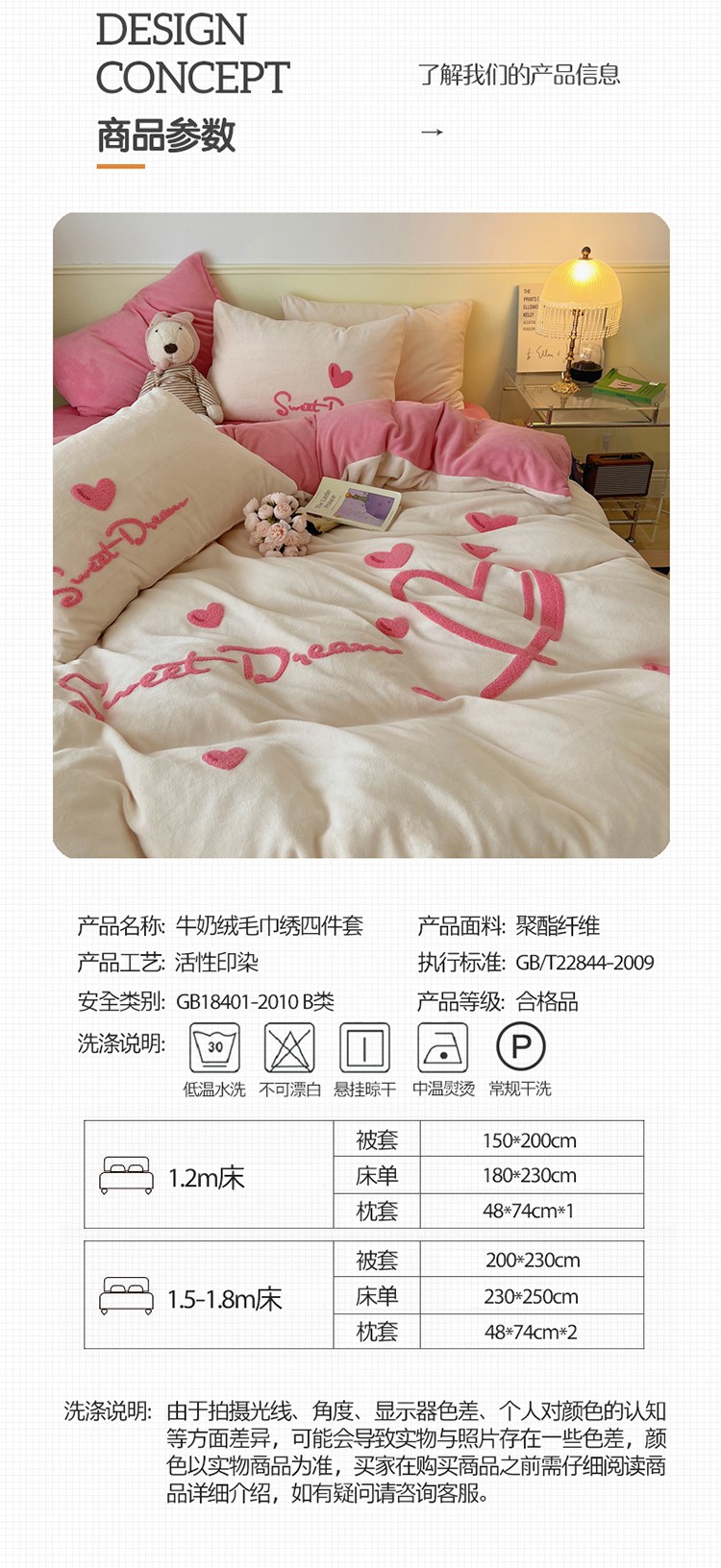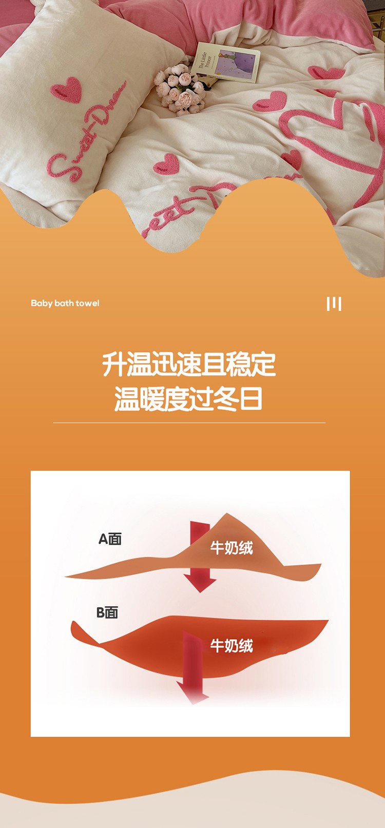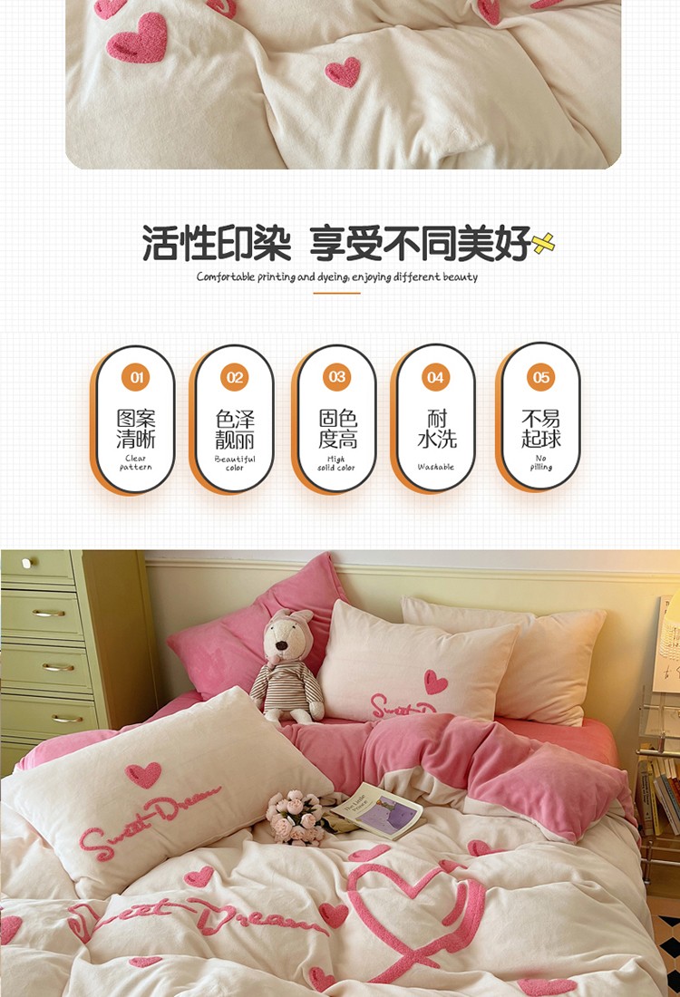 商品名称:三朵2022新款牛奶绒绣花四件套 心情-粉