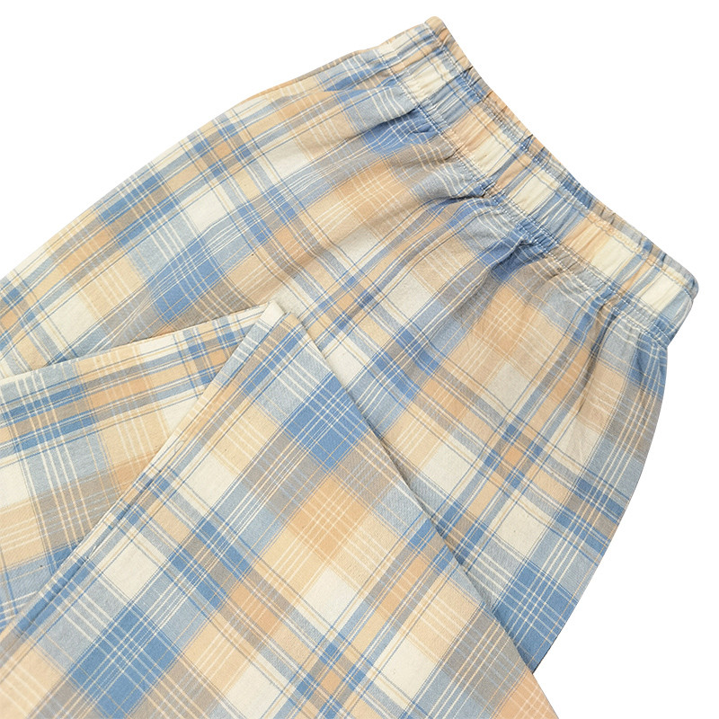 (总)皇寝世家 2023新款纯棉双层纱长袖长裤家居服套装,802男-灰细格,802男-糖果蓝,803女-粉细格,803女-黄细格,803女-绿细格,803女-糖果粉