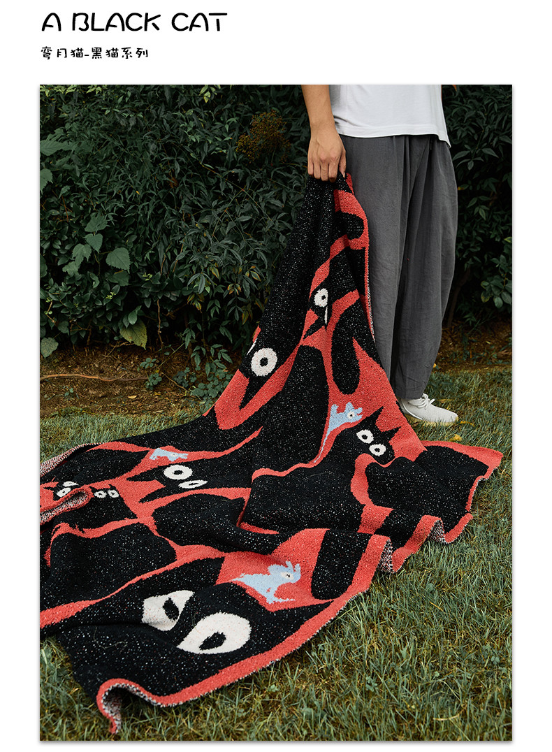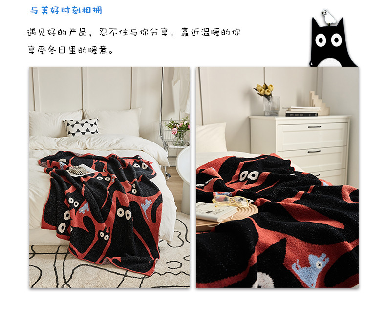 (总)暖绵绵 新款半边绒毛毯-弯月猫系列